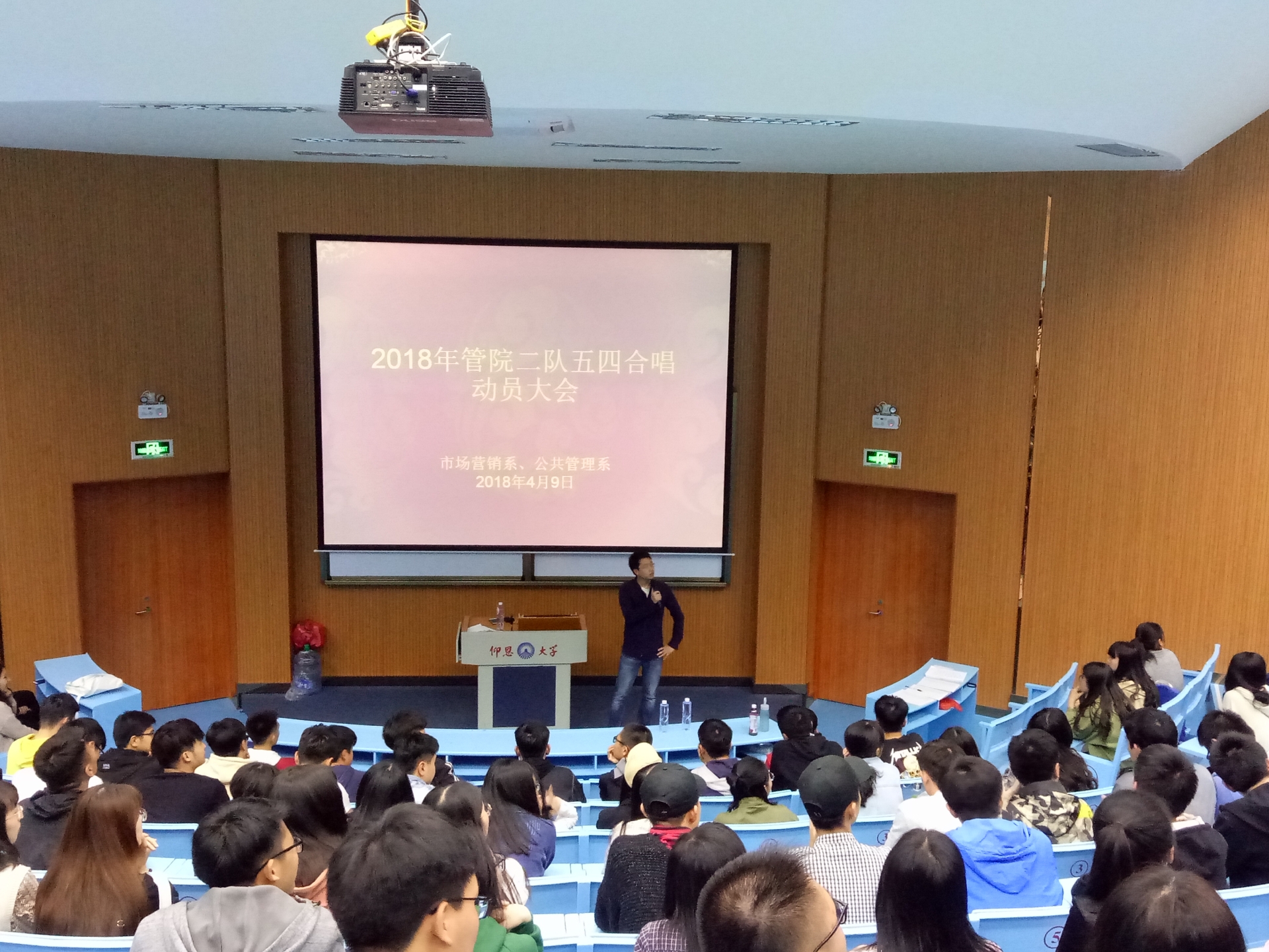 4月9日,sjb世俱杯官方网站一队和二队在第一教学区和昌教学楼求是讲堂进行召开校第十九届五四合唱节动员会,各队在指导老师的排练布置下有序开展练歌活动。