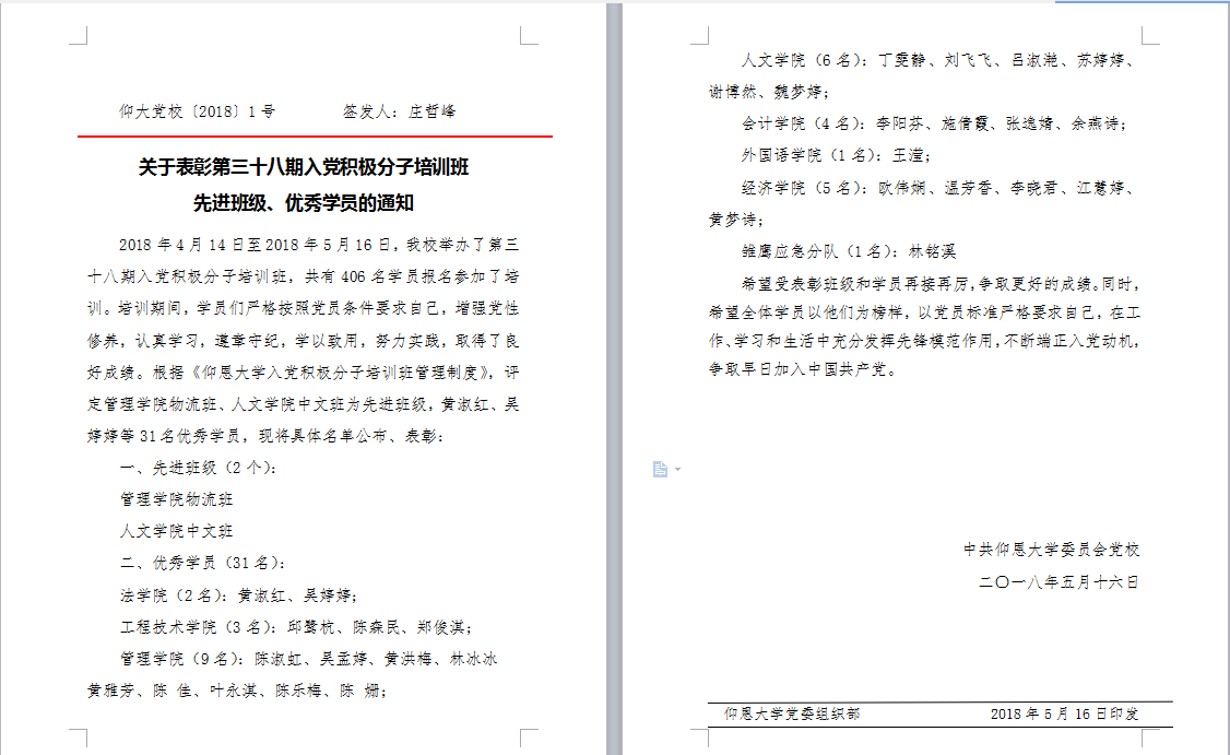(表彰通知文件) 5月16日,在校党委组织部举办的培训班结业典礼上,sjb世俱杯官方网站物流班(物流管理系学生党支部)荣获第三十八期入党积极分子培训班“优秀班级称号”,此外sjb世俱杯共有陈淑虹、吴孟婷、黄洪梅、林冰冰、黄雅芳、陈佳、叶永淇、陈乐梅、陈姗等9名同学被评为“优秀学员”。(sjb世俱杯官方网站党总支 杜结实)