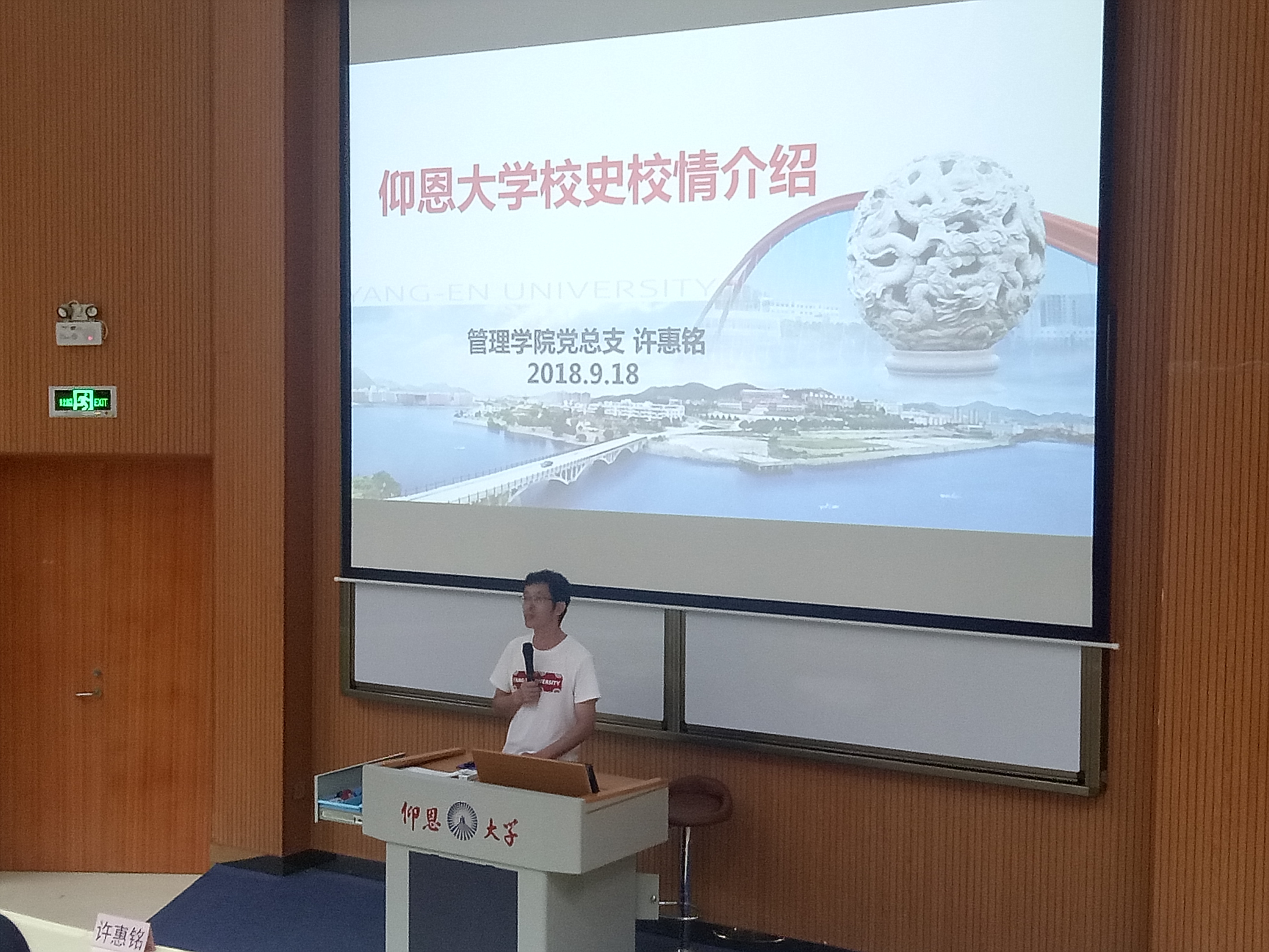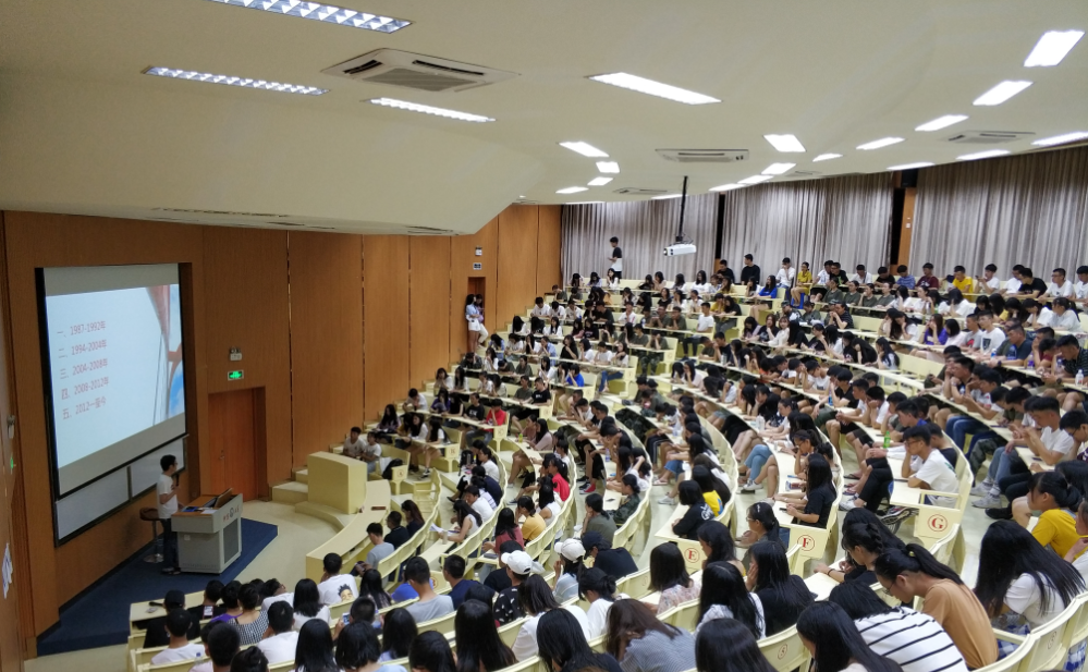 9月18日晚,sjb世俱杯于第一教学区和昌楼致知讲堂召开2018级新生校情校史教育暨暑期实践优秀团队经验分享报告会。sjb世俱杯官方网站党总支书记兼常务副院长许惠铭担任校情校史教育专题讲座主讲,全体辅导员、新生班主任、2018年暑期实践优秀团队学生代表以及sjb世俱杯2018级全体新生出席大会。