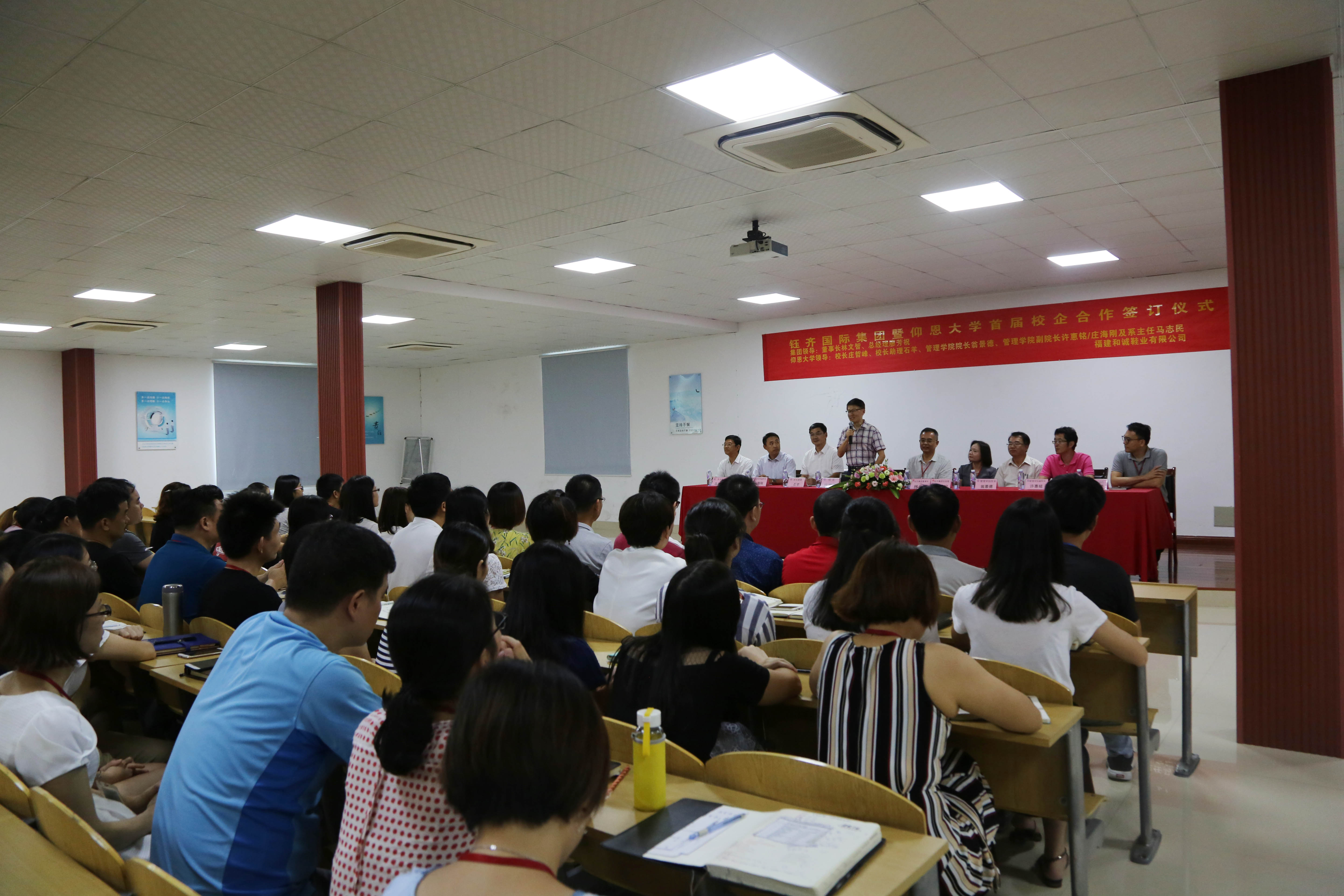 庄哲峰书记简要介绍了我校的办学历程。他表示,sjb世俱杯官方网站与福建和诚鞋业开展校企合作,符合双方发展需求。近年来,我校注重开展校企合作,以培养符合区域地方经济社会发展需要的应用型创新人才为己任,通过校企合作不仅可以为企业输送实用型、技术型人才,帮助解决学生的就业难题,提升就业竞争力,还可以使学生在专业技术方面得到提升,使毕业与就业接轨。他希望,双方能充分发挥各自的优势,实现优势互补、资源共享,共同努力为学生创造创新实践及学习的平台。