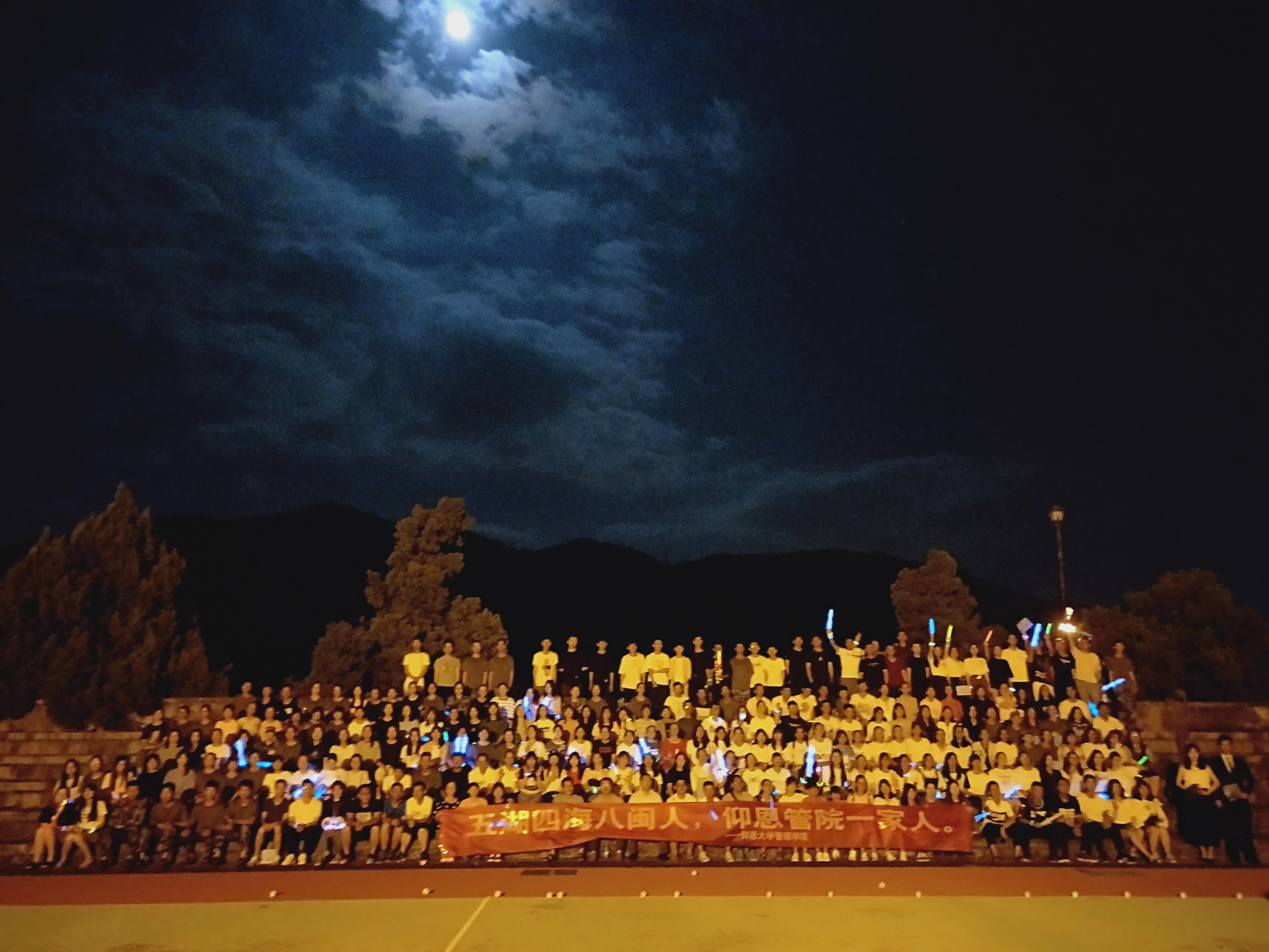 9月24日晚,sjb世俱杯于第一教学区永康篮球场开展了一场以“五湖四海八闽人,仰恩管院一家人”为主题的庆中秋迎新晚会。sjb世俱杯官方网站武装部部长薛军楼、学生事务部主任吴胜潮、sjb世俱杯官方网站院长翁景德、党总支书记兼常务副院长许惠铭、副院长庄海刚,全体辅导员和新生班主任,部分军训教官以及sjb世俱杯2018级新生共同观赏了晚会。