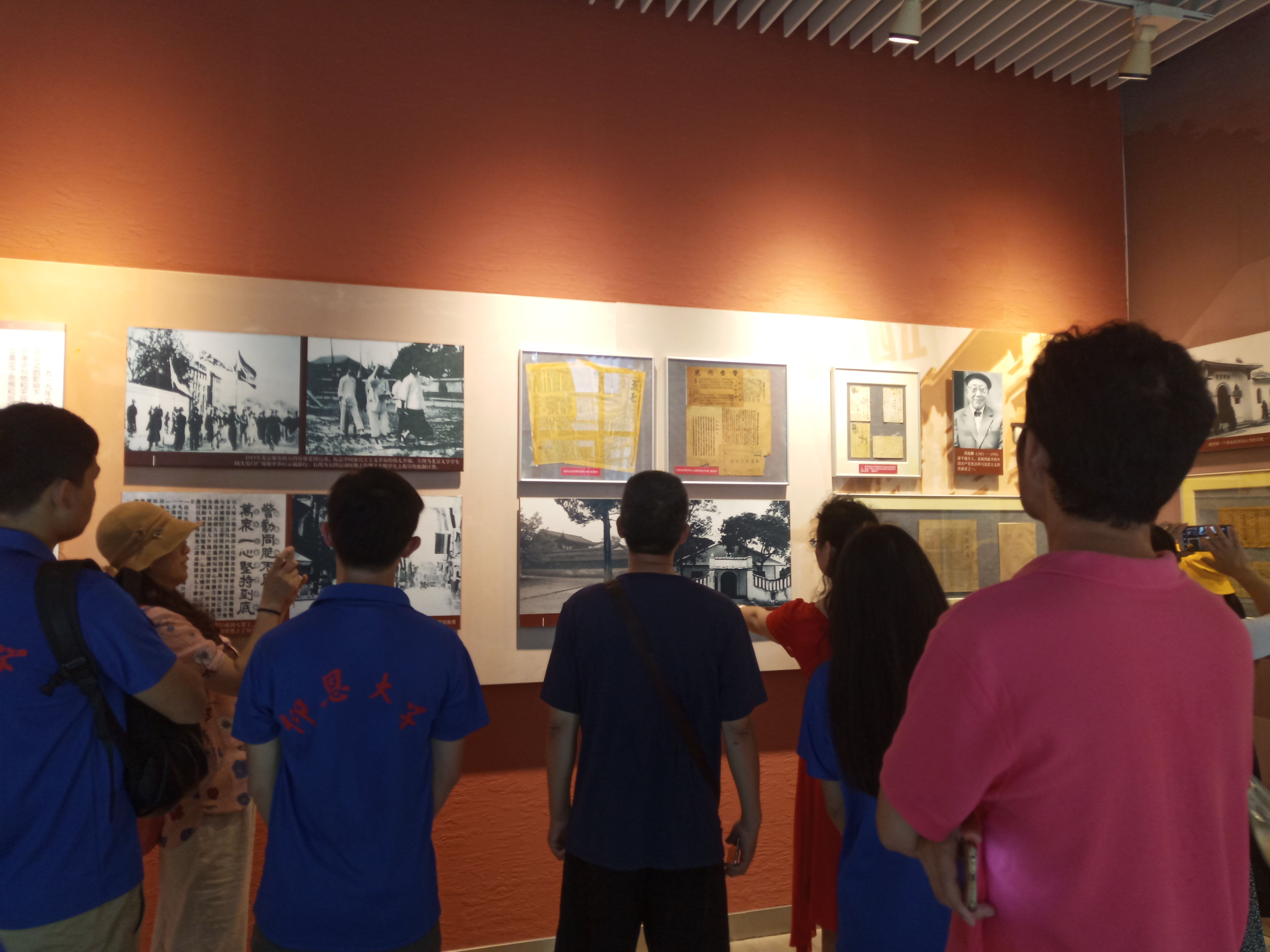 【sjb世俱杯官方网站“善行天下”赴正能量公益服务中心暑期实践队】队员在观看历史图片及故事