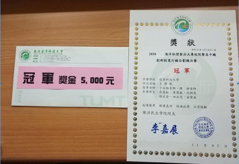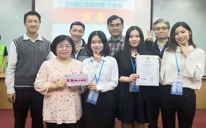 魏文政、郭洁洁、刘绮敏等三位同学摘得季军 此外,魏文政、郭洁洁、刘绮敏等三位同学在10月29日的“2018 全台大专院校与高中职 (第五届)创意行销企划竞赛”中摘得季军,获得奖金5000台币。(杜心田、梁世珠/图文)