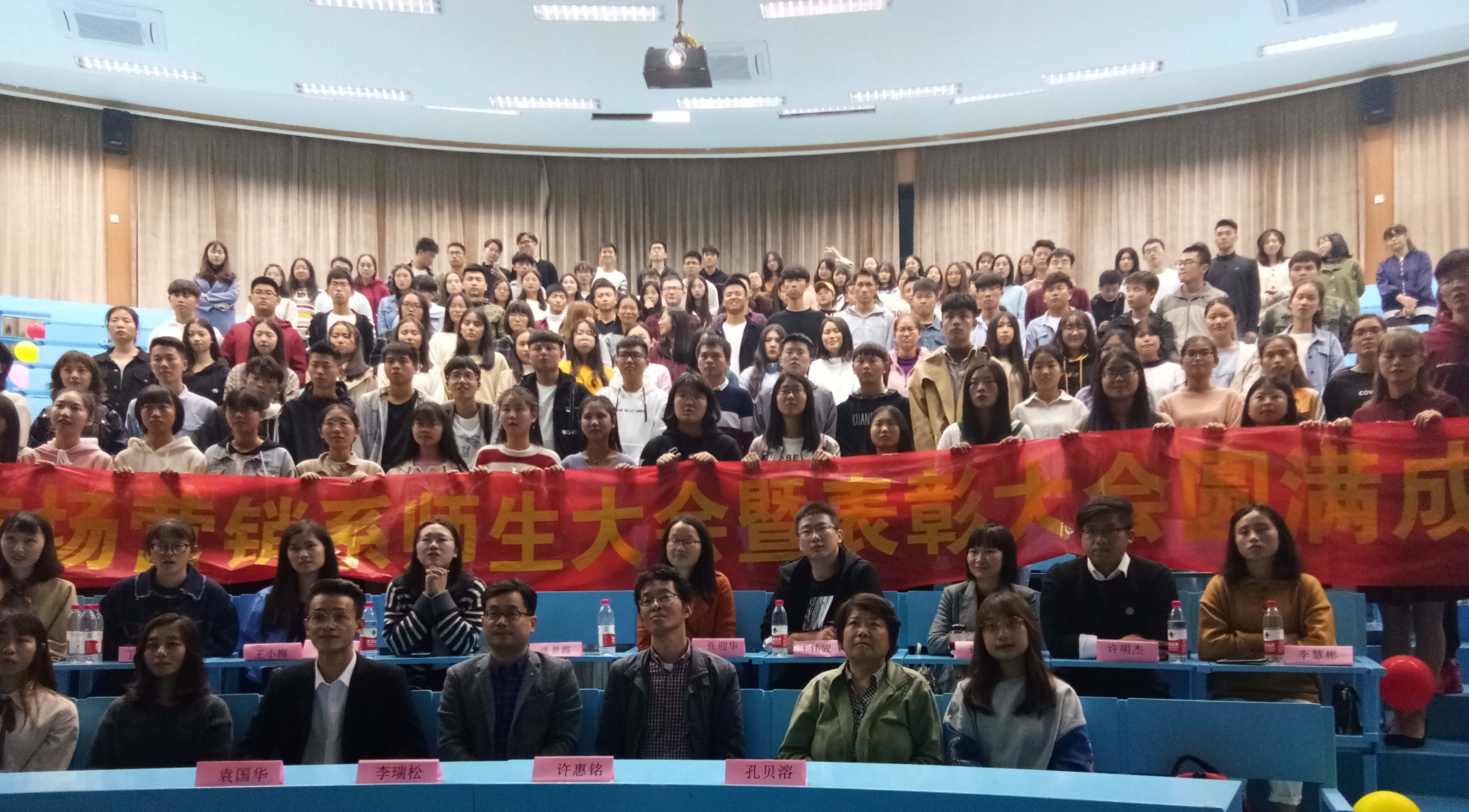 为了不断增强市场营销系的凝聚力,鼓励同学们再接再厉,11月29日晚上,市场营销系于第一教学区和昌教学楼求是讲堂举行师生大会暨表彰大会,sjb世俱杯官方网站党总支书记兼常务副院长许惠铭、市场营销系主任李瑞松、全体专任教师和辅导员老师出席大会。