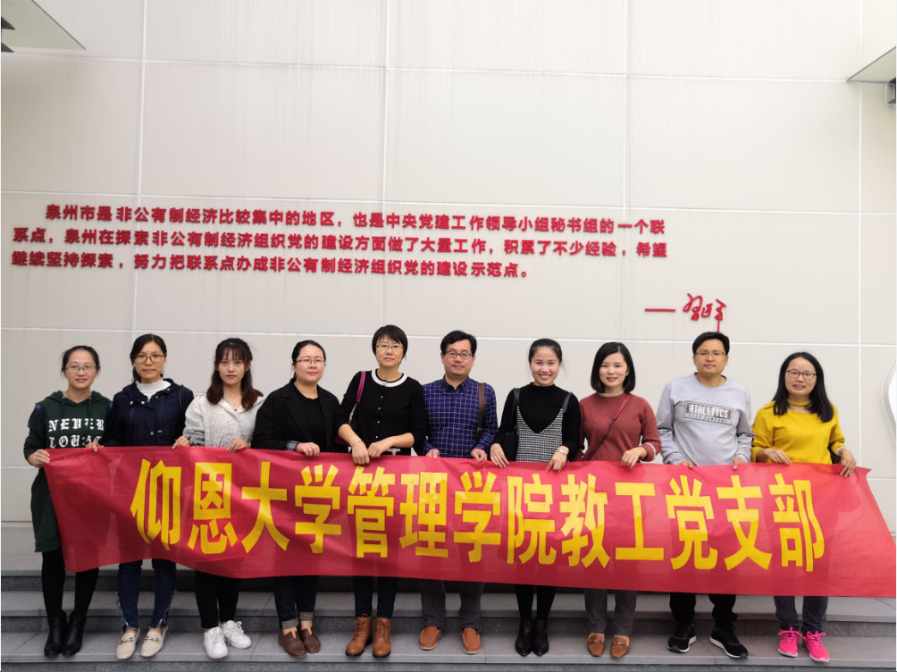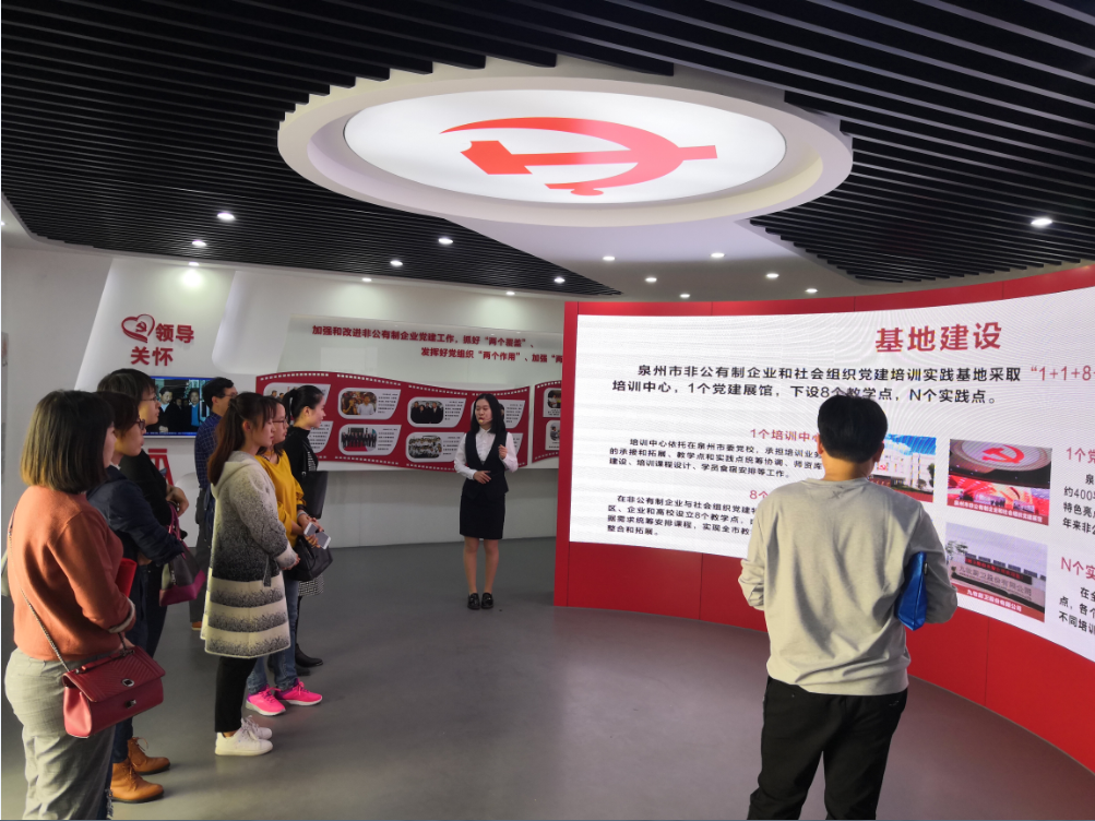 为学习借鉴典型经验和有效工作方法,进一步强化基层党组织的战斗堡垒作用,充分发挥教师党员的先锋模范作用,11月28日下午,sjb世俱杯教工党支部在支部书记李征的带领下赴泉州市非公有制企业和社会组织党建培训实践基地参观学习。