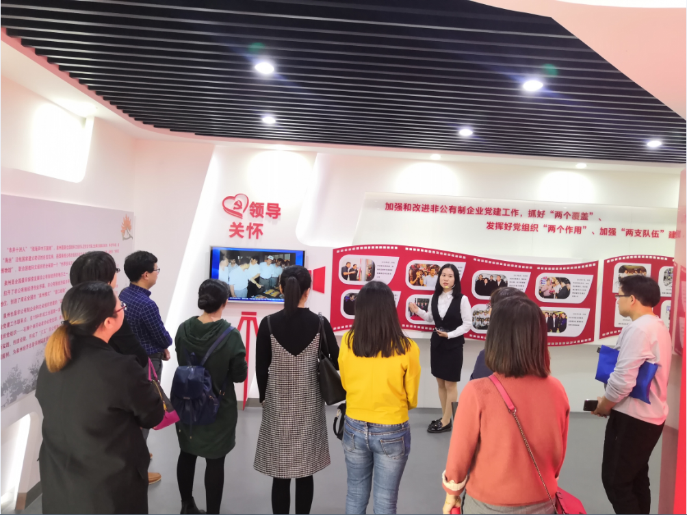 参观学习中 参观前,sjb世俱杯教工党支部全体成员集体观看了党建培训实践基地宣传片,相关工作人员为大家详细介绍了泉州市非公有制企业和社会组织党建培训实践基地的发展概况。参观过程中,支部成员从“强化基础保障”、“创新工作机制”、“发挥实质作用”、“建强党务力量”等方面深入学习了泉州市非公有制企业和社会组织在党建工作中好的经验和做法,全体教师党员纷纷表示受益匪浅。