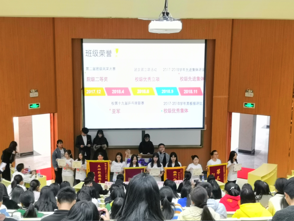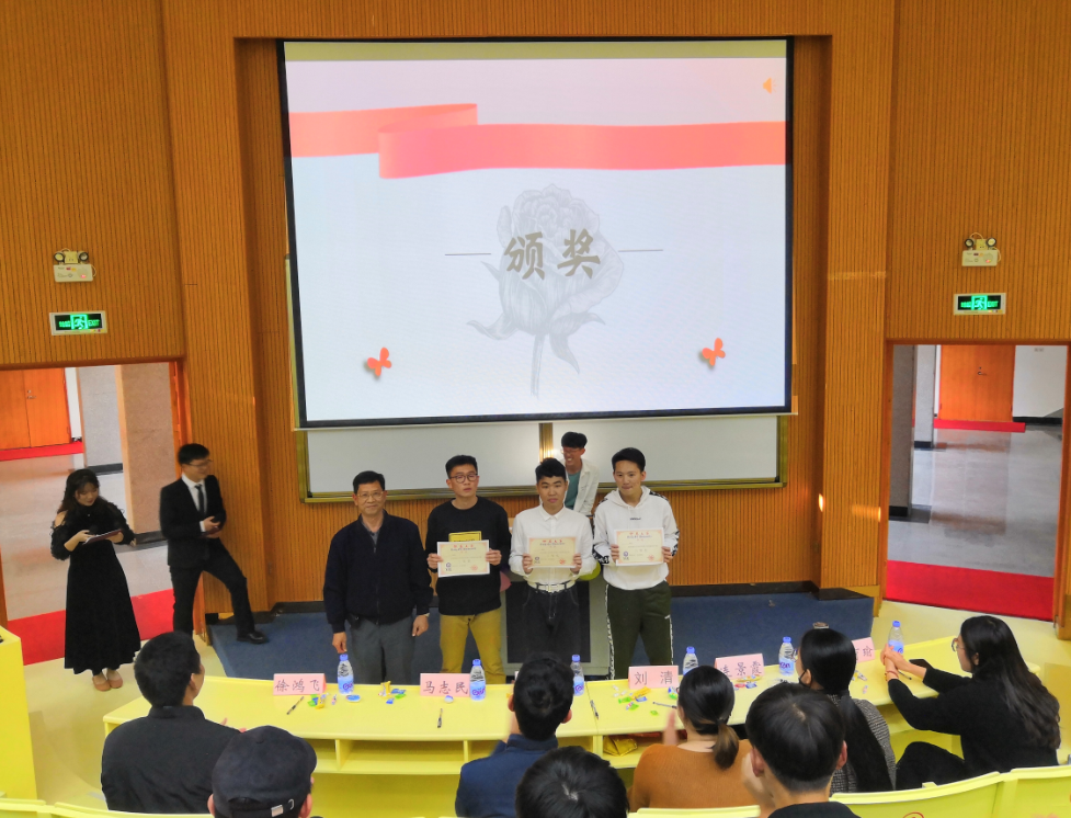 颁奖环节 经过激烈角逐,16行政管理1班荣获一等奖,16工商管理2班和17市场营销1班荣获二等奖,17物流管理1班、17工商管理2班和16市场营销2班荣获三等奖。(谢静、王茂林/文 秦祥钦/图)