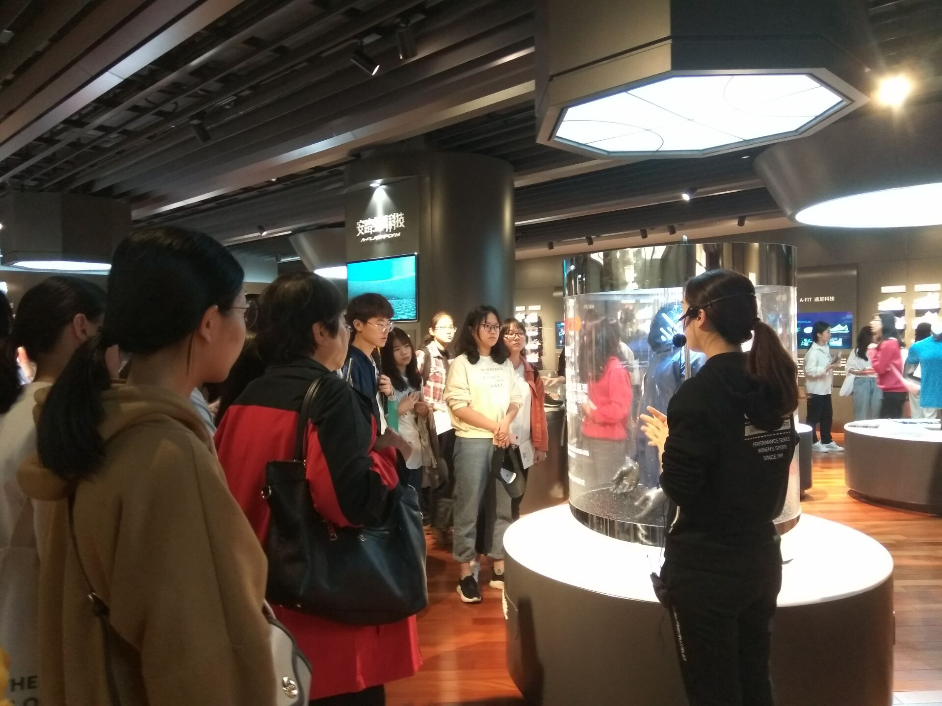 参观新城吾悦旗舰店 师生一行参观安踏总部博物馆,了解安踏企业创业史。公司内部讲解员详细为大家介绍了安踏集团的发展概况、品牌产品的发展历程以及安踏集团取得的一系列辉煌成就。同学们对安踏集团是如何从一家传统的民营企业转型成为具有国际竞争力的集生产制造与营销导向于一体的综合性体育用品企业有了深刻的认识和理解。随后,师生们分别参观安踏总部旗舰店和新城吾悦旗舰店,通过职业经理人和专业营销人员经验传授,学习门店零售的管理模式、商品管理、商品陈列、终端促销和电子商务等方面的专业知识。参观过程中,同学们踊跃提问,店长进行耐心解答。大家感受到了企业员工饱满的精神状态和热情的服务态度,通过系列产品的专属设置提升消费者的消费欲望。