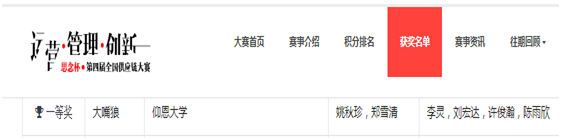 大赛官网公布的获奖名单截图