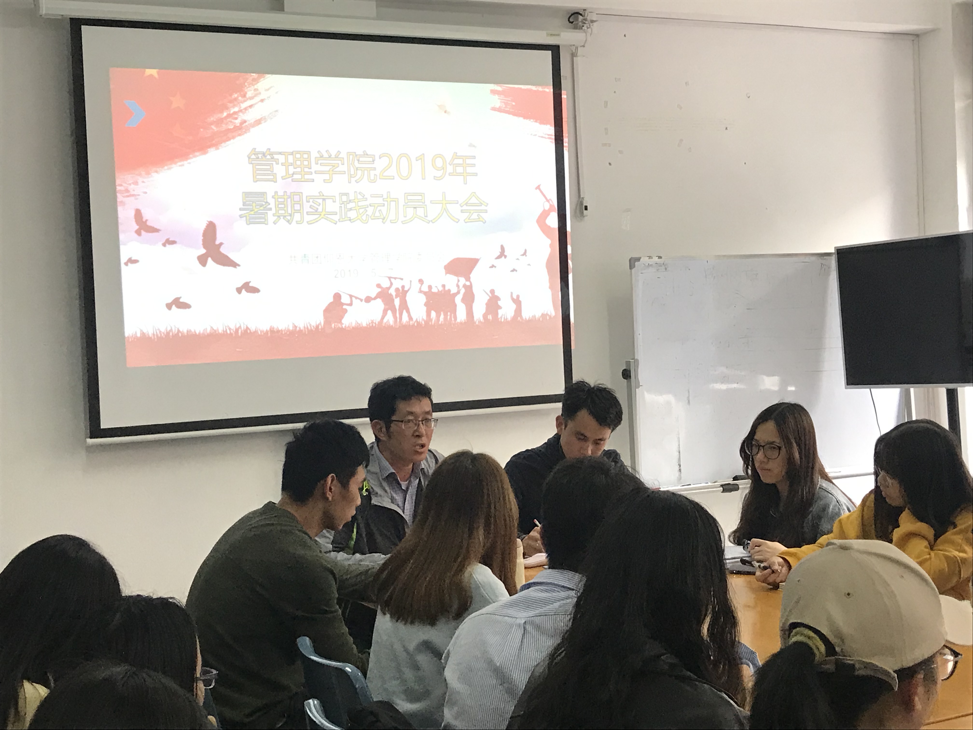 5月7日下午,sjb世俱杯团委在第一教学区曼谷楼206召开2019年暑期实践动员大会,sjb世俱杯党总支书记兼常务副院长许惠铭、院团委书记杜结实以及各系辅导员和各实践队负责人到场参加。