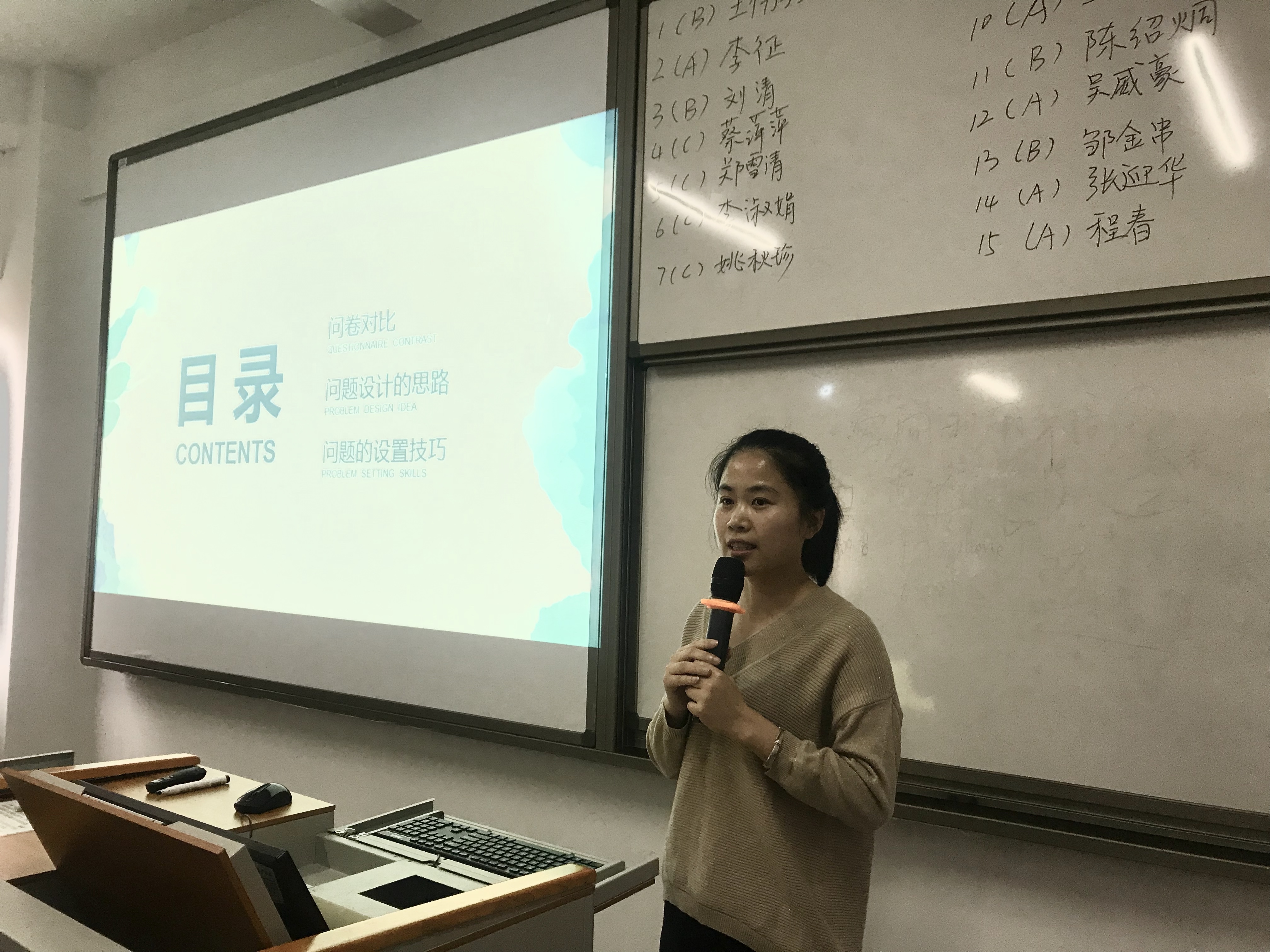 课堂教学环节 本次院级竞赛分为两个环节,分别为教学设计(教案)与课堂教学,比赛现场气氛活跃,经过激烈角逐,最终比赛结果为第一名:张燕红、陈绍炯;第二名:程春、李征、刘清;第三名:蔡萍萍、陈玉珠、李淑娟。