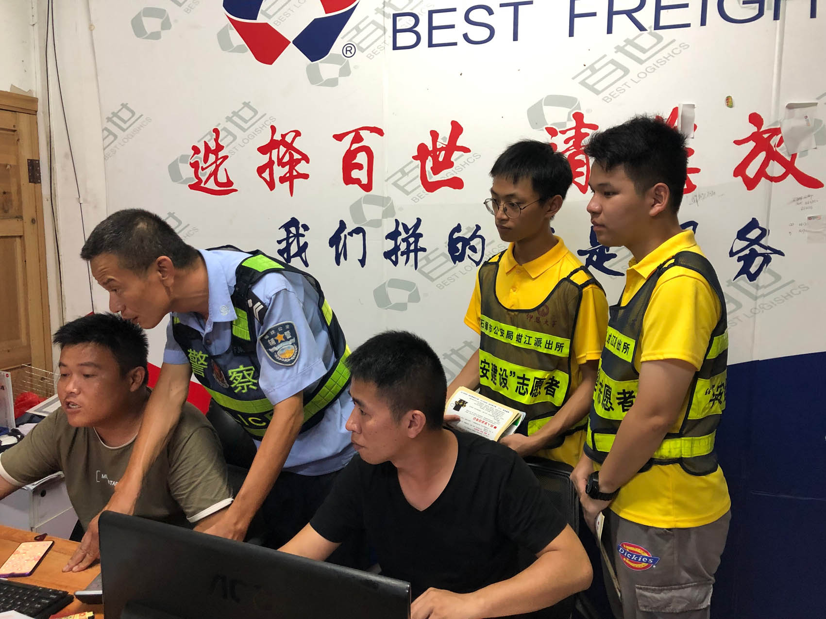 在安全宣传活动过程中,实践队向社区居民发放了《平安蚶江倡议书》《珍爱生命、拒绝毒品》《安全防范之防骗》《崇尚科学、反对邪教》《拒绝酒后驾车倡议书》等宣传材料,并走访各大中型企业与重点单位,协助工作人员检查消防安全设施,为群众讲解灭火器使用方法。针对寄递物流安全管理的三个100%的落实情况,实践队协助民警开箱抽查并做好登记,确保相关违禁危险品进入到物流运输。