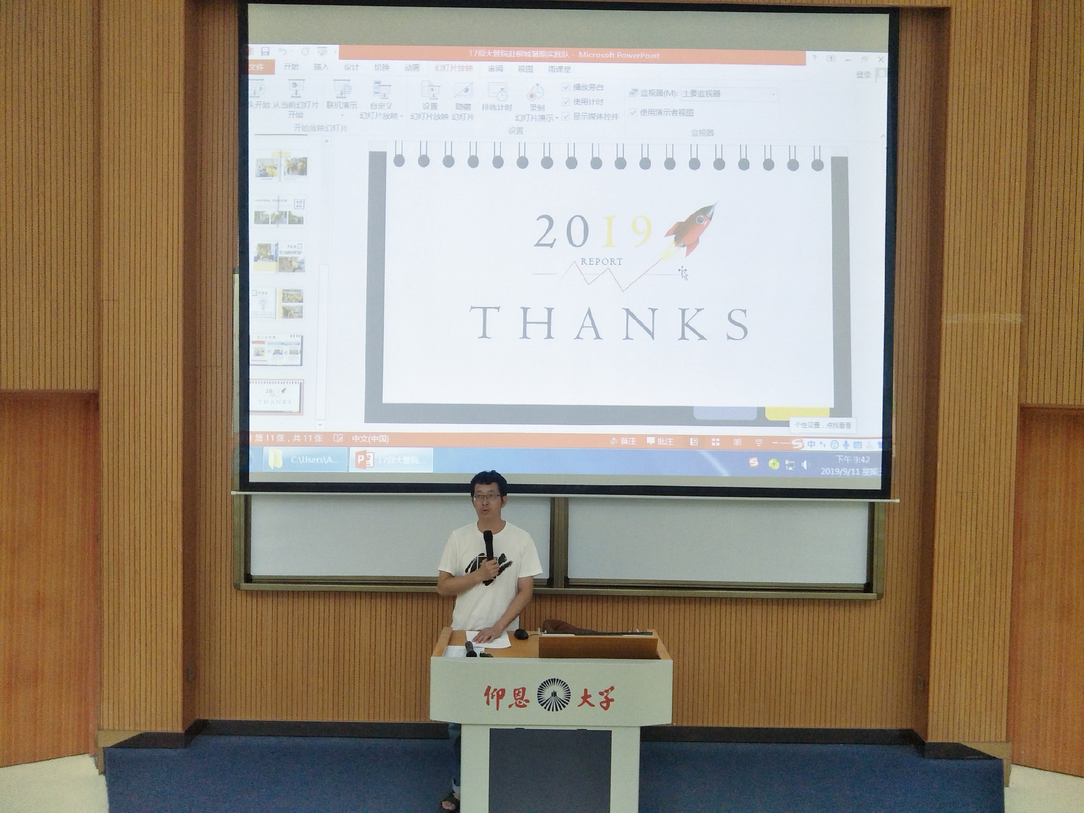 报告会现场 本次汇报共有10支专业实践队和10支社会实践队。每支实践队都进行了精彩的汇报,一张张生动鲜活的实践照片,展现出sjb世俱杯青年学子的责任担当;一句句厚重质朴的实践感言,反映了sjb世俱杯青年学子的成长蜕变。期间,由于电脑设备出现问题,在主持人的带领下在场师生齐唱《我和我的祖国》,献礼新中国成立70周年,把现场的气氛推向高潮。
