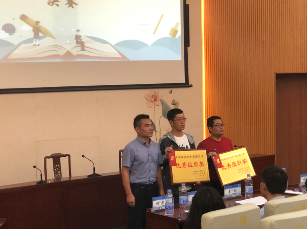 为引导学生做好课堂笔记,促使养成良好的学习习惯,提高学习兴趣,增强学习能力,形成“亮笔记、促教风、树学风”的良好氛围,促进良好教风、学风建设,9月25日下午,我校第一届课堂笔记大赛决赛在第一教学区多功能报告厅举行,校党委副书记程如平,副校长许总,教务部主任郑兆领,校团委书记杨勤,各学院党总支书记、分管教学副院长、团委书记等观看比赛。