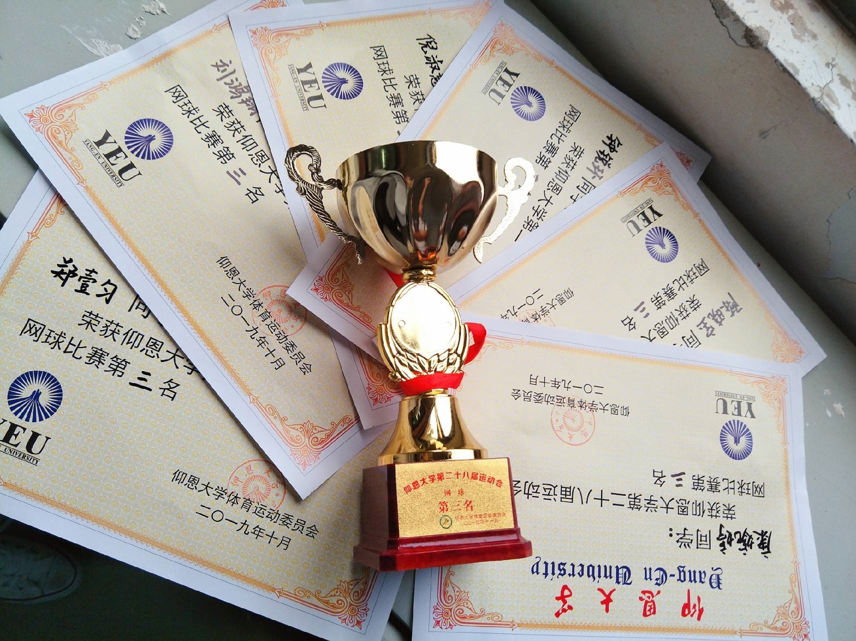 获奖者 此次比赛得到了老师、同学的一致支持,参与者甚众。比赛本着“友谊第一,比赛第二”的精神,整场比赛都是在欢乐和谐的氛围中进行。比赛过程中,对手双方你来我往赛事激烈,惊险的救球,落点精准的底线回球,一系列的专业动作更是让鼓掌声响彻全场,喝彩不断。市场营销系的队员们不论面对多么强大的对手,也毫不畏惧,仍然发挥他们积极进取,团结共进的精神。比赛过程中每个参赛选手都拼尽全力,数次比赛下来,队员从开始的青涩到应对熟练,持续的进步也让其在比赛中脱颖而出,最终取得季军的好成绩。在比赛结束后的颁奖典礼上,队员们井然有序,礼貌地从颁奖老师手里接过奖杯,时时刻刻展现着市销学子的良好风貌。