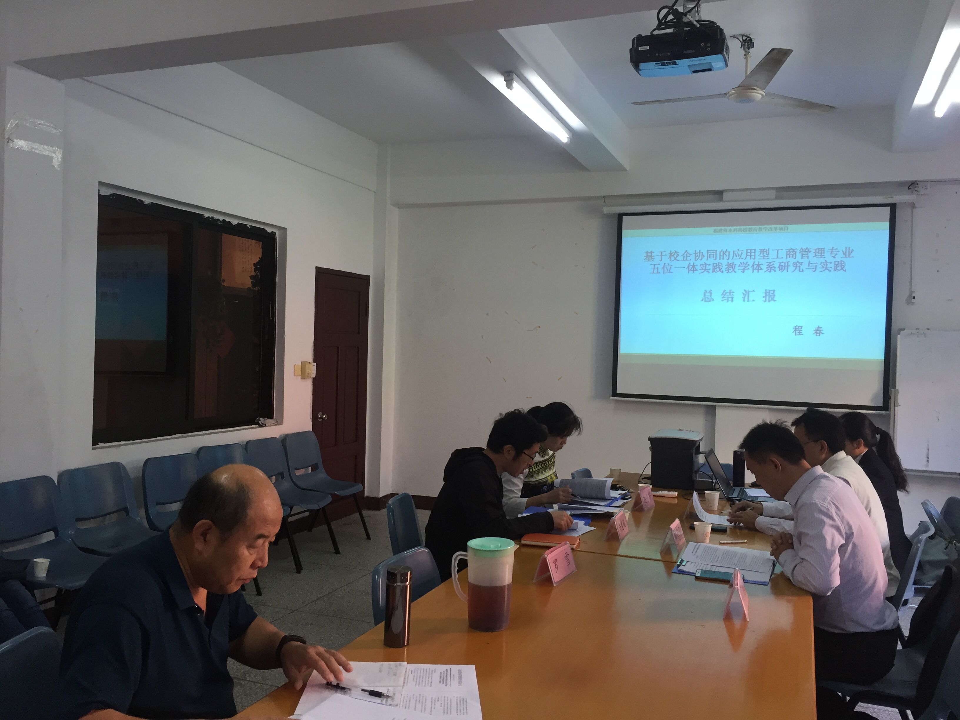 11月14日上午,sjb世俱杯联合科研管理部在第一教学区曼谷楼206室召开福建省2017年本科高校教育教学改革研究项目结题验收报告会。工商管理系主任程春就项目“基于校企协同的应用型工商管理专业五位一体实践教学体系研究与实践”作结题报告。sjb世俱杯官方网站院长翁景德、党总支书记兼常务副院长许惠铭、副院长庄海刚、科研管理部主任赵芳芳等参加结题验收报告会。