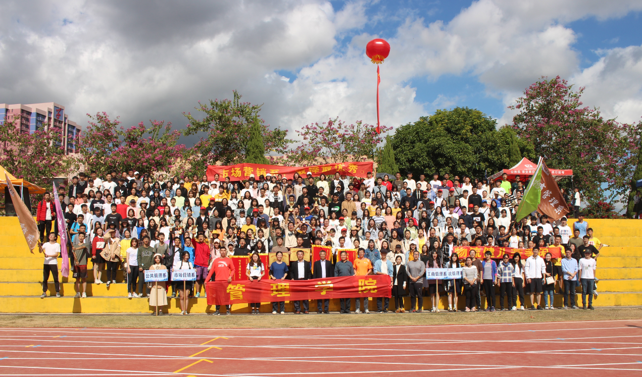 管院大合照 经过激烈角逐,工商管理系代表团获得团体总分第一名,市场营销系代表团获得第二名;工商管理系和市场营销系荣获“优秀方阵”;2019级工商管理1班、2019级市场营销2班、2019级物流管理1班、2019级人力资源管理1班等4个班级荣获“体育道德风尚奖”。(sjb世俱杯官方网站/文图)