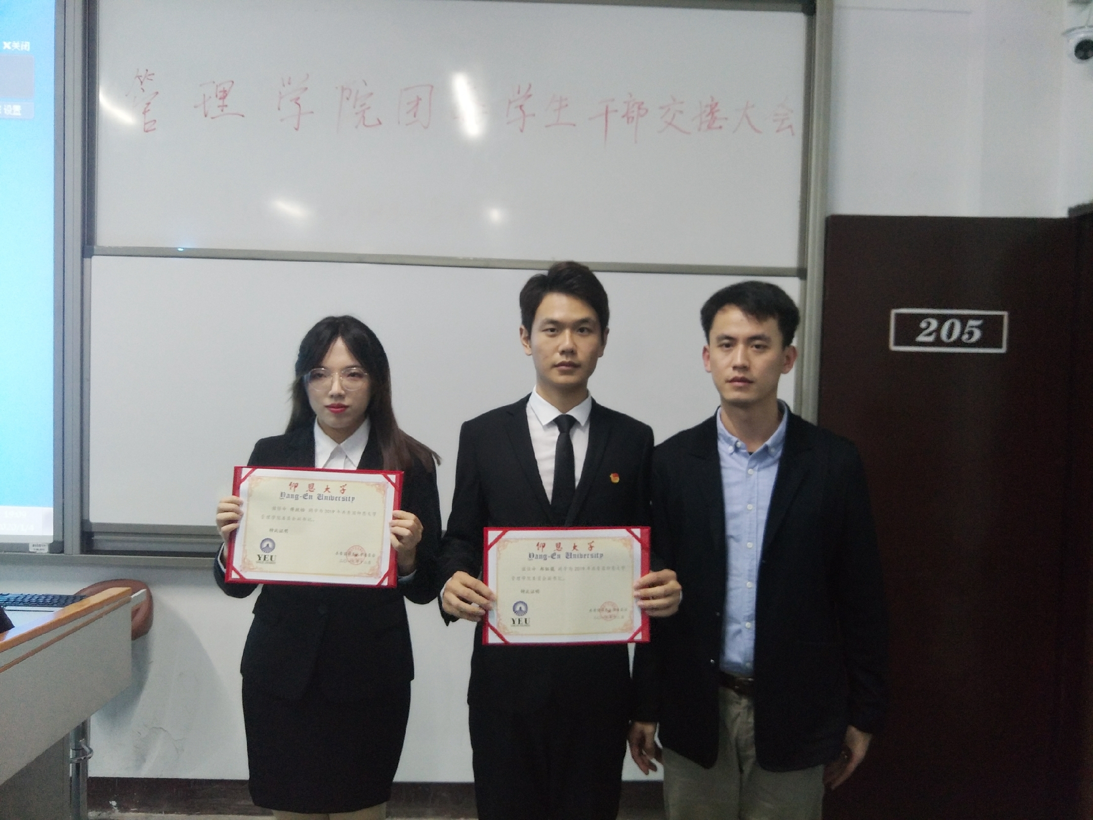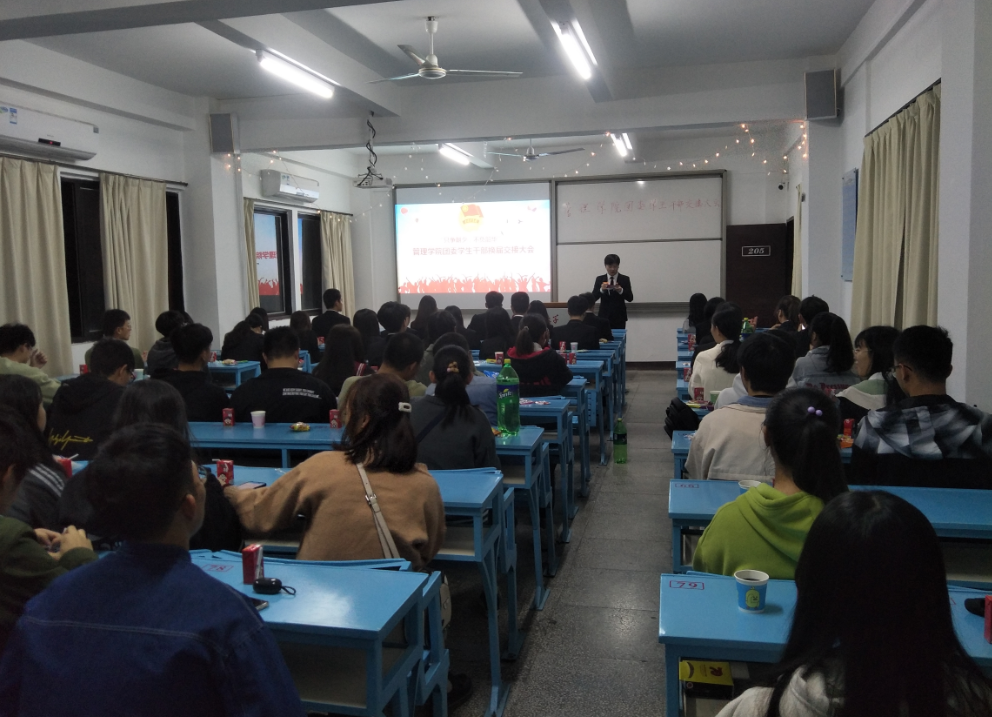 1月4日晚,sjb世俱杯团委第二十二届学生干部换届交接大会暨全体干部干事见面会在第一教学区吉龙楼205顺利举行。学院团委第二十一届干部、第二十二届代理干部以及全体干事到场参加。