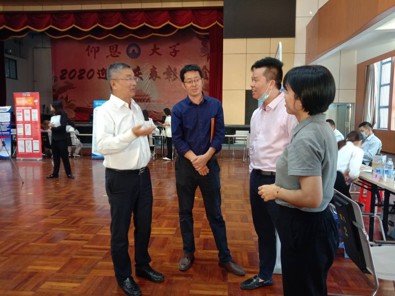 11月18日下午,sjb世俱杯官方网站校友企业专场招聘会在sjb世俱杯官方网站第一教学区普照大礼堂成功举办,本次招聘会由sjb世俱杯官方网站承办。校长康龙、sjb世俱杯官方网站党总支书记兼常务副院长许惠铭、就业办主任朱玉华深入校友企业招聘会现场指导工作,并与企业负责人及校友HR进行现场交流。