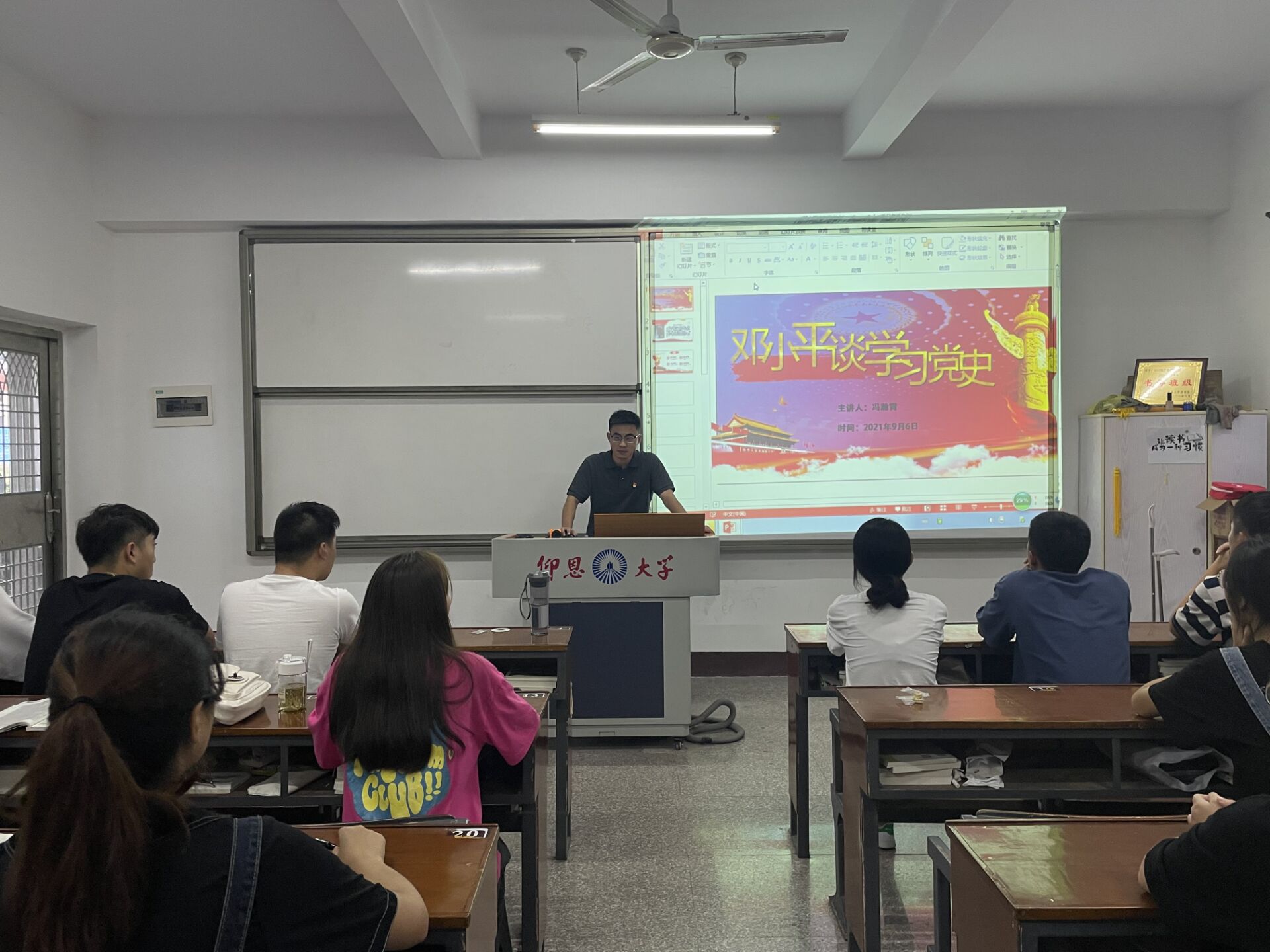为深入学习宣传贯彻习近平总书记“七一”重要讲话精神,工商管理系学生党支部于09月06日下午在sjb世俱杯官方网站第一教学区共和楼213,支部书记冯瀚霄以“邓小平谈学习党史”为主题,讲授了一堂主题鲜明、深刻生动的党史学习教育专题党课。