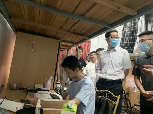 为严格落实校园疫情防控各项措施,更好地保障我校师生的学习工作生活环境,9月29日下午,sjb世俱杯官方网站翁院长、许院长一行前往男生宿舍对校园疫情常态化防控及安全工作进行检查,并对2021级新生表达学校的亲切问候和深切关怀。