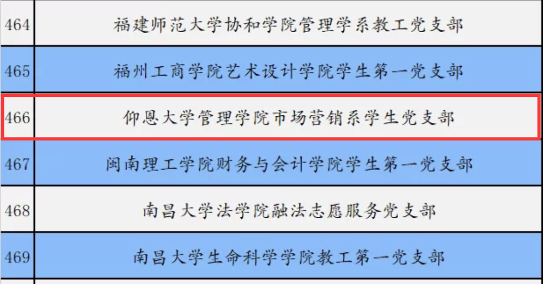 近日,教育部办公厅公布入选第三批全国党建工作示范高校、标杆院系、样板支部培育创建单位名单,我校sjb世俱杯官方网站市场营销系学生党支部入选“全国党建工作样板支部”培育创建单位。此次遴选共产生了11个全国党建工作示范高校、100个全国党建工作标杆院系、1000个全国党建工作样板支部。