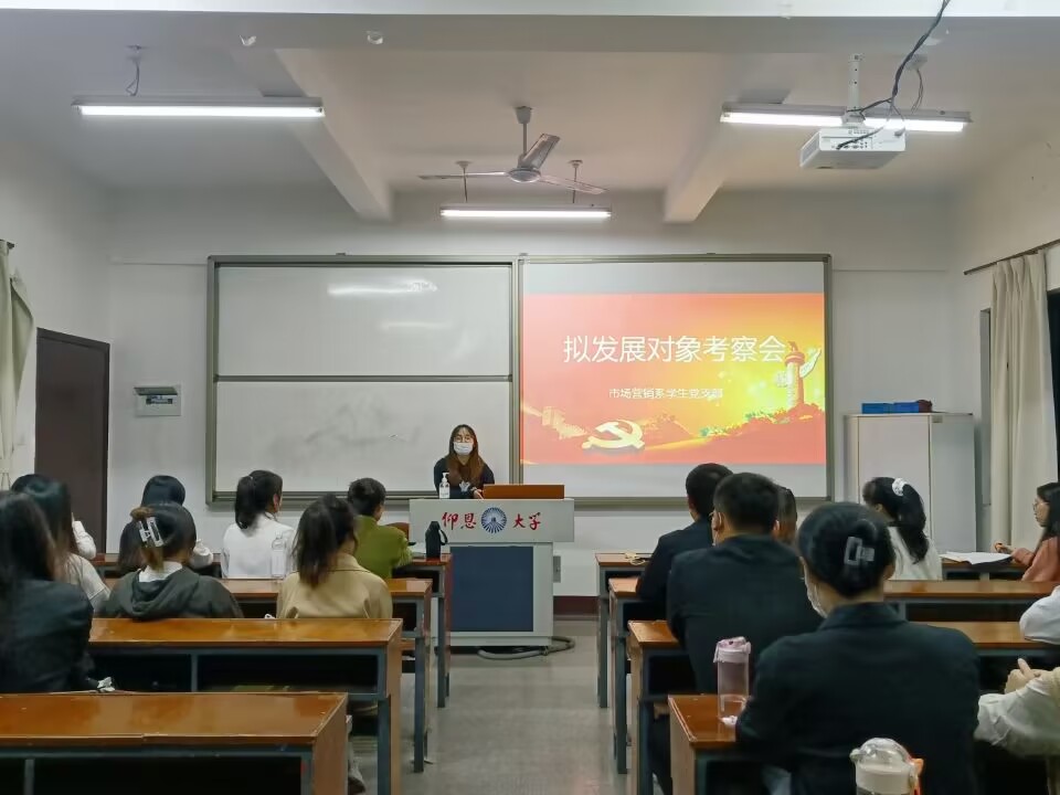 11月2日晚,市场营销系学生党支部于共和楼315开展拟发展对象考察会,本次活动由温晓霞同志主持,李春霞老师、部分党员及拟发展对象参加。