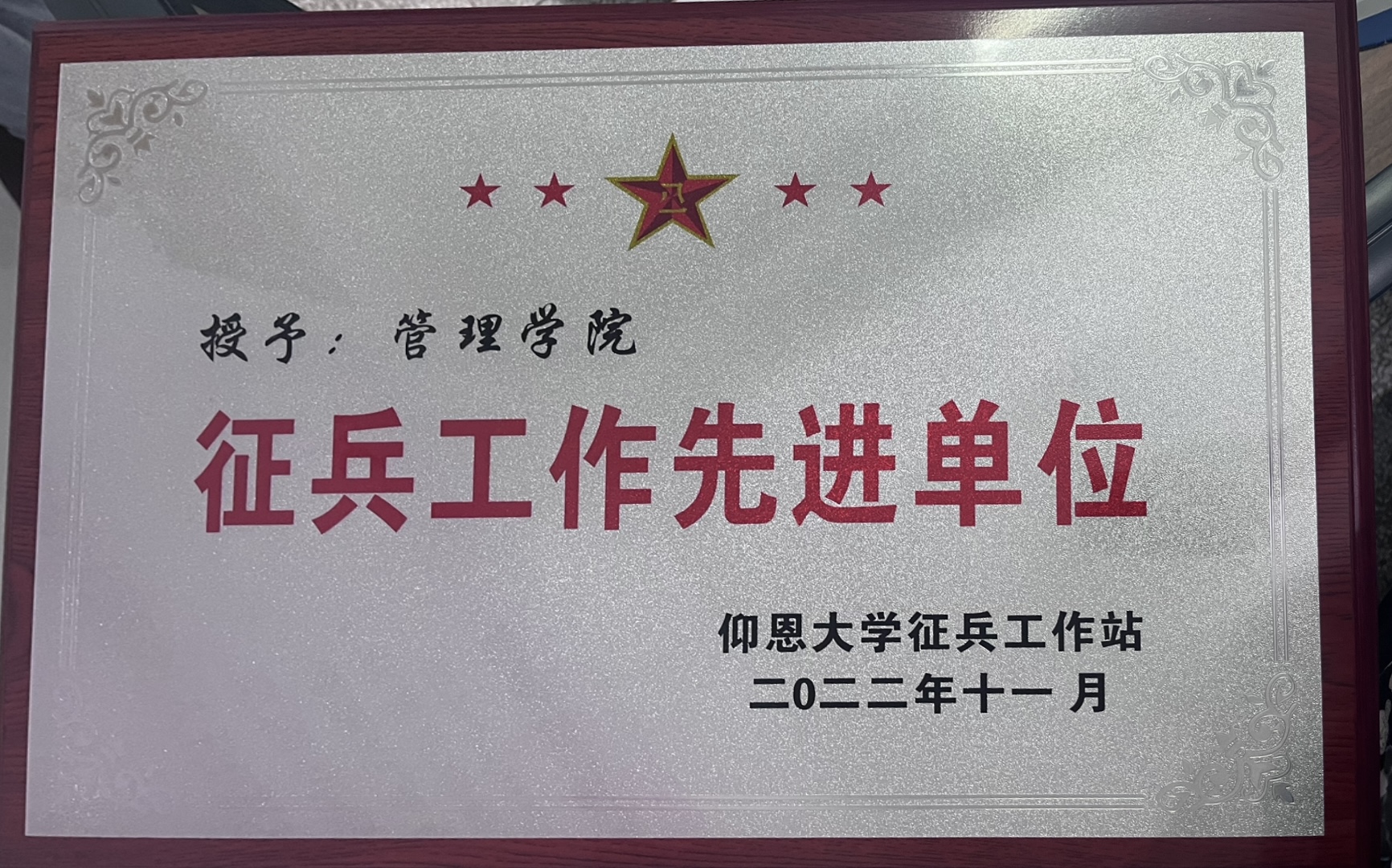 日前,sjb世俱杯官方网站荣获2022年度征兵工作先进单位称号。