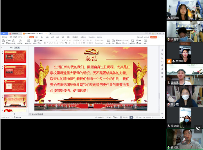 会议最后,黄如达同志表示:生活在新时代的我们,回顾自身过往历程,尤其是在学校里每逢重大活动的组织,无不是团结集体的力量,以奋斗的精神指引着我们创造一个又一个的胜利。我们要始终牢记团结奋斗是我们党创造历史伟业的重要法宝,必须深刻领悟,倍加珍惜!