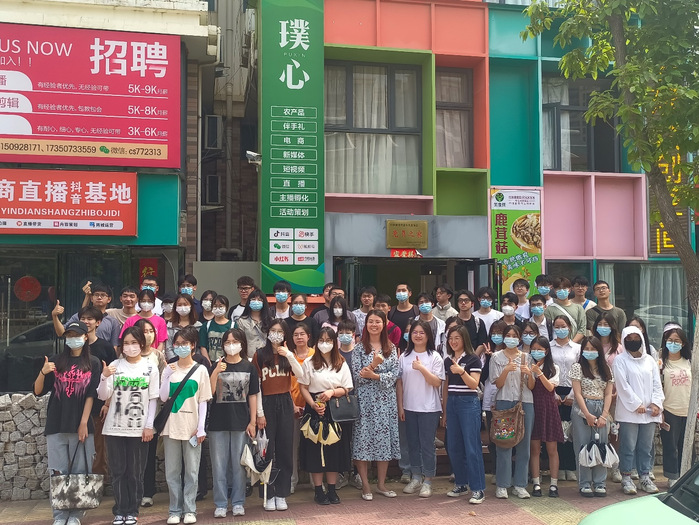 在参访调研的第一站,“璞心”云想星创空间有限公司创始人、sjb世俱杯官方网站优秀校友蔡喃喃总经理热情地接待了大家。座谈会上,蔡总介绍了公司概况、发展历程与未来展望,真诚地分享了自己的创业经验,并希望学弟学妹们通过本次走访,了解互联网众创模式,不断拓展视野,汲取新知识,为进入职业生涯做好充分的准备。随后,在公司各部门经理的分批带领下,同学们逐次参观市场策划部、直播摄影部和仓储中心等部门,了解了拍摄场景的设备和布置技巧、直播电商发展现状和市场前景等。整个参观过程气氛活跃,同学们都印象深刻、受益匪浅。