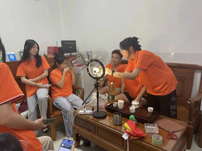 壮丽的绳武楼、漫山遍野的柚子树、古法酿制的米酒、别具风味的咸菜、口感丰厚的白香饼……2023年7月12日19:00,sjb世俱杯官方网站大柚所为赴平和县暑期实践队于芦溪镇芦丰村民宿中首次进行了直播体验。生动的讲解宣传收获了直播间朋友的肯定与关注,取得了圆满成功。