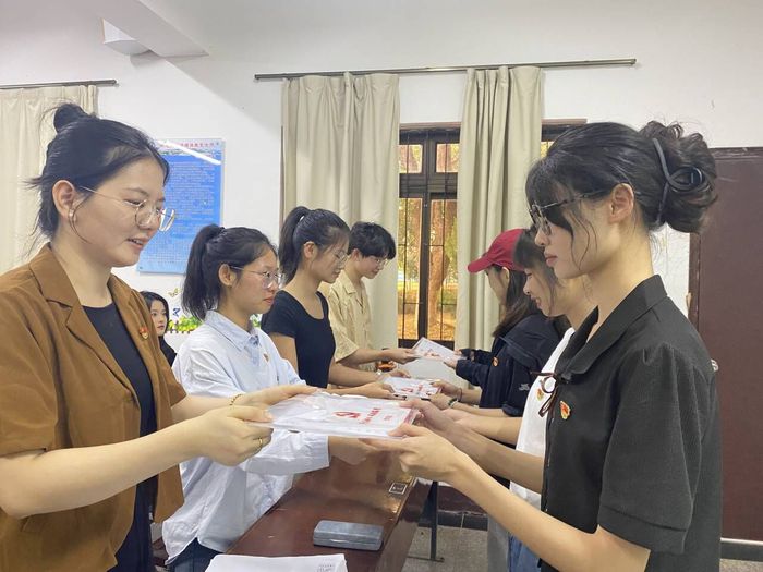会议开始,黄于诚同志对支部规模、支部活动风采及支部荣誉等基本情况进行介绍,并对新加入党员表示热烈欢迎。会议上,新生党员依次进行自我介绍,表示今后会以更严格的标准要求自己,履行党员责任,以实际行动积极投身支部建设之中。紧接着,余姝琦同志带领全体党员重温入党誓词,老生党员为新生党员送上学习大礼包,切实增强了新加入党员的归属感、获得感和幸福感。会议最后,支部书记连景霞老师进行总结发言,并表示:新生党员要严守纪律,用高标准要求自己,充分发挥党员的先锋模范作用,以青春行动诠释青年的使命担当,努力为党支部的建设添砖加瓦。