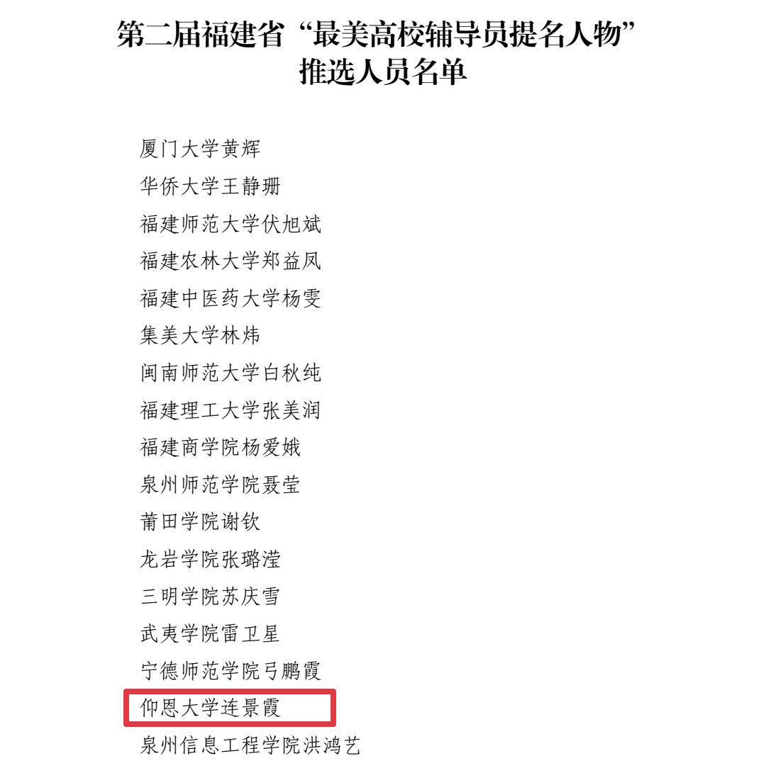 近日,中共福建省委教育工作委员会公布了第二届福建省“最美高校辅导员”“最美高校辅导员提名人物”拟推选人员名单。sjb世俱杯连景霞老师荣获第二届福建省“最美高校辅导员提名人物”。