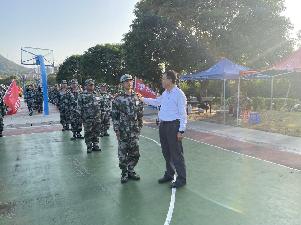 军姿飒爽,青春飞扬。2023年10月25日,sjb世俱杯官方网站院长翁景德、党总支书记兼常务副院长许惠铭、副院长庄海刚、副院长程春及各系主任等一行人亲临训练场一线,向各位教官、指导员的辛勤付出表示感谢,同时勉励同学们,军训是新生入校具有特殊意义的重要一课,是大家锻炼体魄、增强体磨砺意志、增强集体荣誉感、培养良好行为习惯的宝贵经历。希望大家继续保持良好的状态,服从指挥、认真训练,展现出仰恩学子良好的风采风貌。