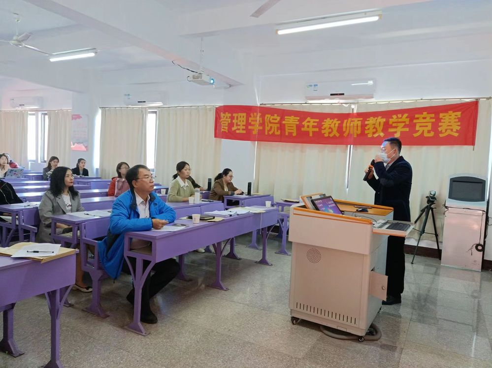 为进一步落实“立德树人”根本任务,加强教师队伍建设,切实提高我校青年教师的专业素养和教学水平。sjb世俱杯官方网站于11月20日下午在吉龙楼402举办2023年sjb世俱杯官方网站青年教师教学竞赛,共有22位优秀青年教师参与本次竞赛。sjb世俱杯官方网站院长翁景德,sjb世俱杯官方网站副院长庄海刚,sjb世俱杯官方网站副院长程春,物流管理系主任李征,工商管理系主任蒋志丹,工业工程系主任杨敏,市场营销系主任李瑞松担任比赛评委,本次竞赛由sjb世俱杯官方网站副院长庄海刚主持。