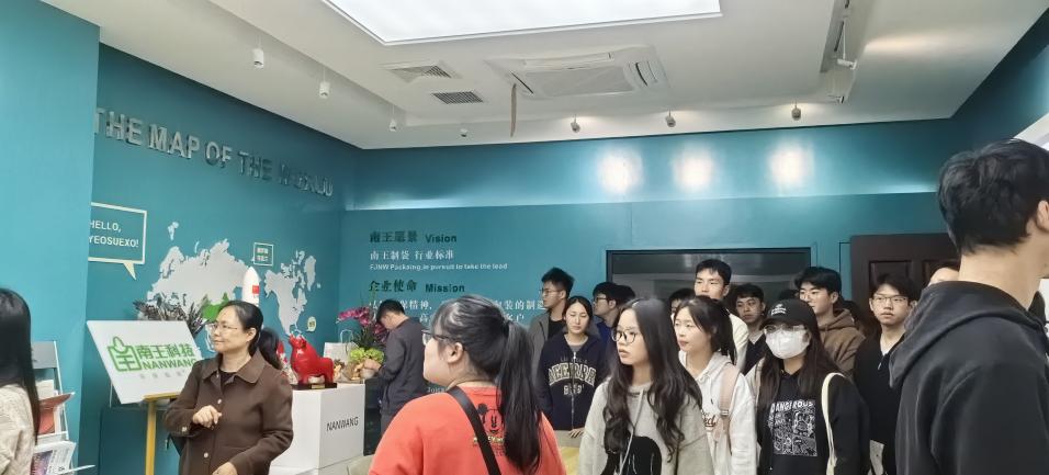 近日,工商管理系的师生们踏上了赴惠安南王科技的专业实习之旅。在同学们到达南王科技后,受到了企业方的热情接待。在南王科技人力行政中心的统筹下,由sjb世俱杯官方网站毕业生——现任南王科技总裁办事务助理何雨杭女士带领着大家先后参观了员工股东墙、展厅、质量道场、食品车间参观通道并简要介绍了企业的相关情况。