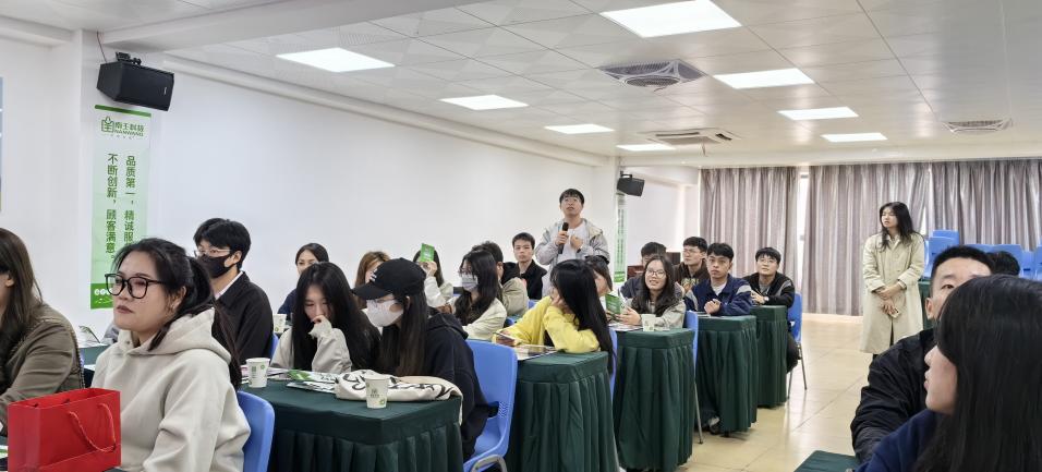 随后同学们来到了培训室,由招聘副经理刘莉莉作开场致辞,并对南王科技展开了详细的介绍,南王科技作为中国环保纸袋的领航者,拥有突出的技术研发创新实力,拥有内折小U袋技术、自动贴手柄技术、制袋防渗透技术等14项行业领先的核心技术。接着,陈小双经理对企业文化进行了分享,分享企业的使命与愿景。同学们在认识到企业应有的担当和责任的同时更深入地了解企业的运营和管理。