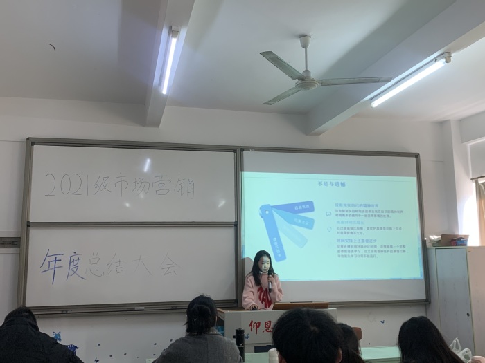 本次会议在一定程度上加强了2021级市场营销班级建设,通过总结和推广先进个人的经验。帮助班级同学认识到了自己的不足之处,将在新的一年中更加努力地学习和工作。