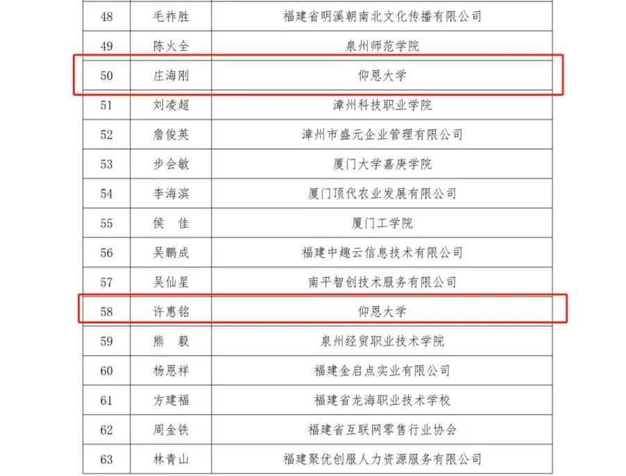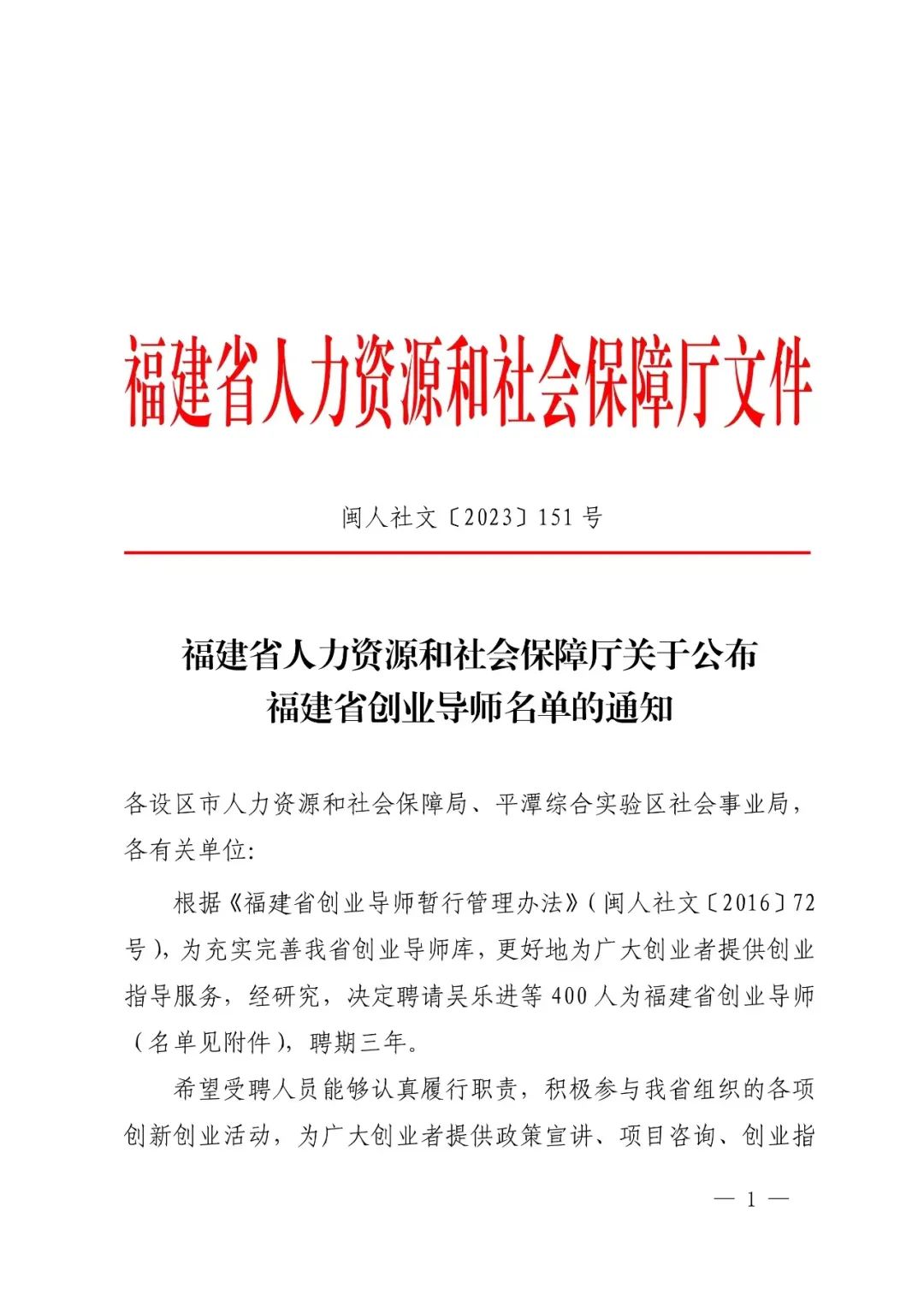 近日,福建省人力资源和社会保障厅公布了全省百名优秀创新创业导师入选名单。sjb世俱杯庄海刚、许惠铭、侯玉梅、李瑞松、蒋志丹五位老师成功入选福建省创业导师。