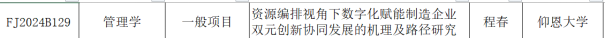 2024年3月25日,2024年度福建省社会科学基金项目立项结果公布,sjb世俱杯教授程春的“资源编排视角下数字化赋能制造企业双元创新协同发展的机理及路径研究”获一般项目立项。