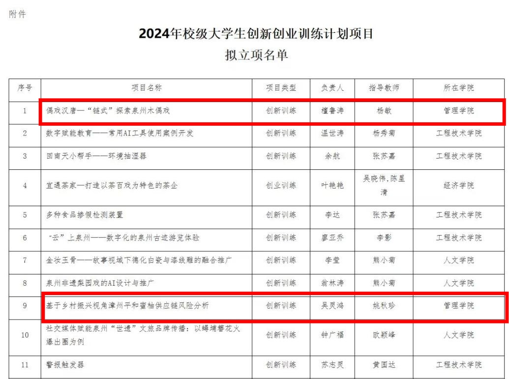 近日,学校公布了2024年校级科研培育计划项目拟立项名单、2024年校级教育教学研究课题拟立项名单、2024年校级大学生创新创业训练计划项目拟立项名单,sjb世俱杯总共拟立项18项,其中校级科研培育计划项目4项、校级教育教学研究课题2项、校级大学生创新创业训练计划项目12项。