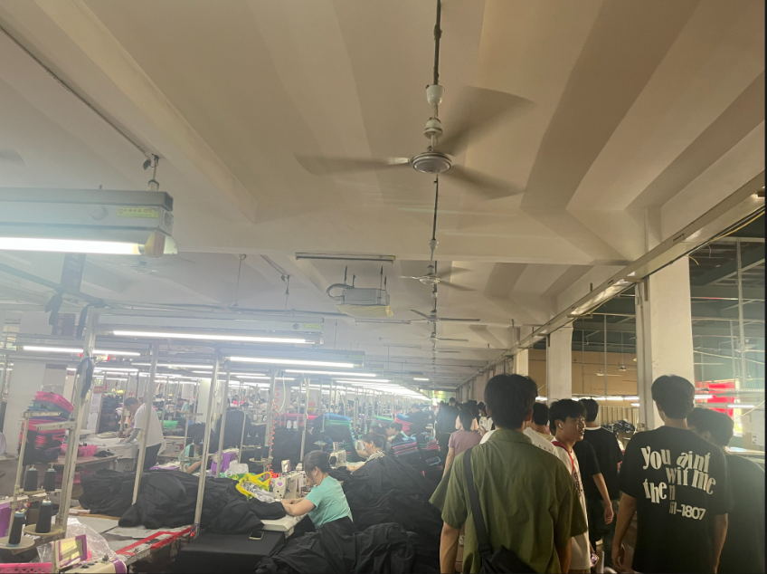 在匹克服装生产车间,车间工作人员为同学们讲解生产工序流程,使同学们了解到服装生产过程每个程序的质量监控和追踪,深入了解了质量管理在企业生产环节的有效运用,深刻感受到了匹克集团的质量文化。