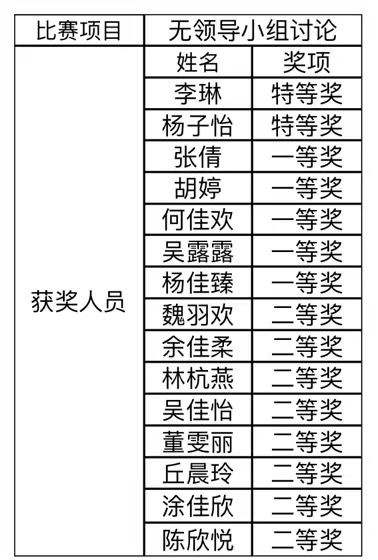 经过激烈角逐,实务设计、数字HR赛道共6支队伍获奖;案例分析赛道共谢诗妍、江欣豪等13位同学获奖;劳动争议处理赛道共林丹云、谢媛丽等6位同学获奖;职场实战赛道共何佳欢、范灵璇等12位同学获奖;无领导小组讨论共李琳、杨子怡、张倩等15位同学获奖。