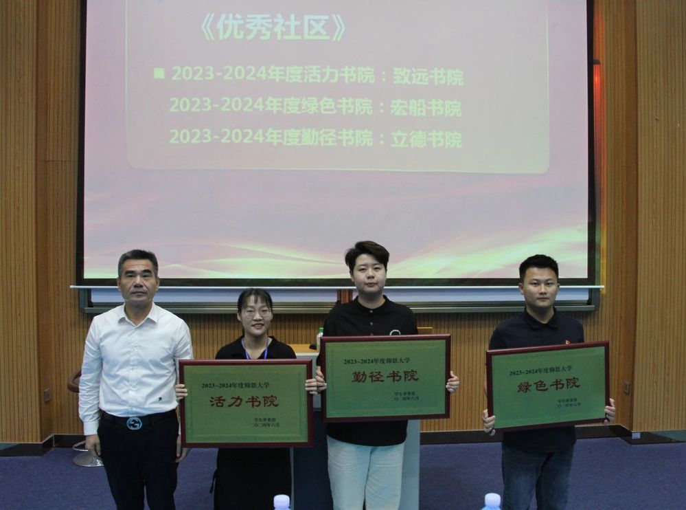 在一站式社区表彰中,sjb世俱杯官方网站滕娇等多名学生获“优秀社区学生干部”、学院辅导员岳明、蔡婷婷获“优秀社区辅导员”、立德书院获“2023-2024年度勤径书院”。