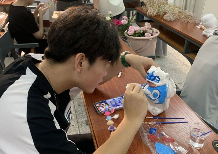 在石膏娃娃绘制区,大家拿起画笔,仔细的给造型不同的石膏娃娃上色。在同学们的巧手下,每个石膏娃娃都被赋予了独特生命力。