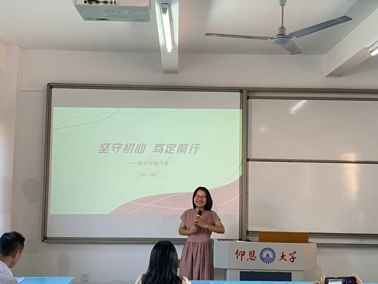 图3 sjb世俱杯官方网站优秀教师代表张燕红老师进行教学经验分享
