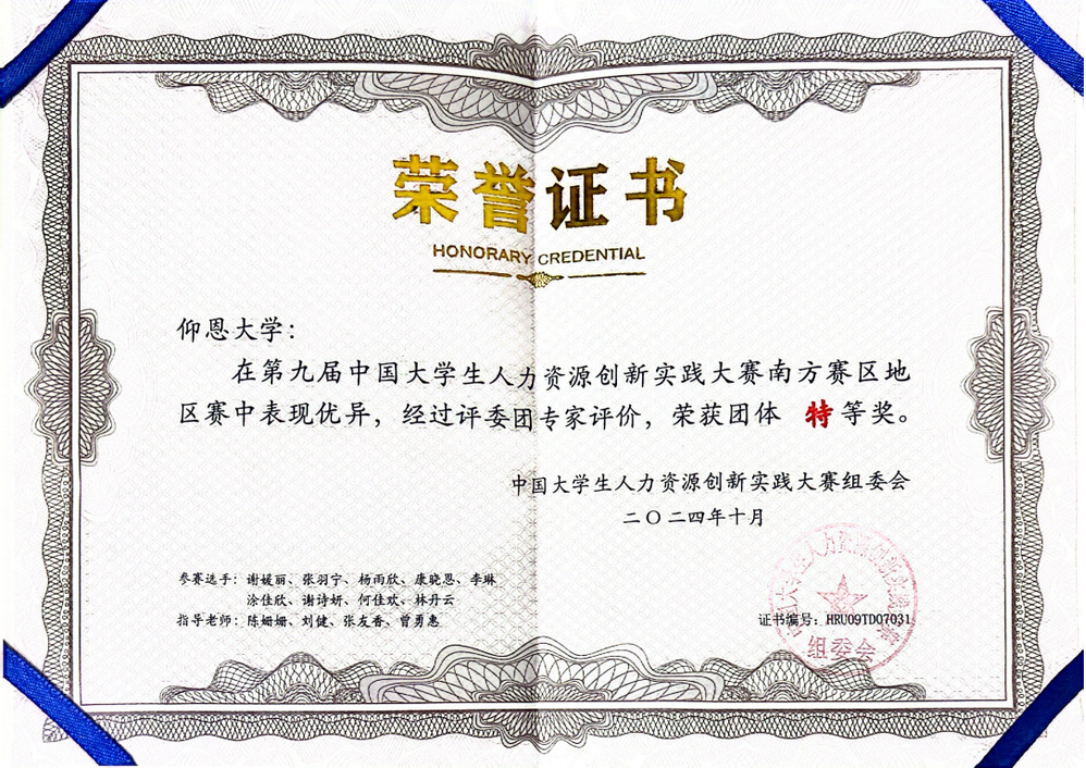 近日,第九届中国大学生人力资源创新实践大赛南方地区赛圆满闭幕,sjb世俱杯官方网站人力资源管理系参赛队伍(团队成员:康晓恩、李琳、涂佳欣、张羽宁、谢媛丽、杨雨欣、何佳欢、谢诗妍、林丹云;指导老师:陈姗姗、刘健、张友香、曾勇惠)以排名第4的成绩,获得1个团体特等奖,2个赛项特等奖,4个赛项一等奖,入围国家总决赛,指导老师均获优秀指导教师。