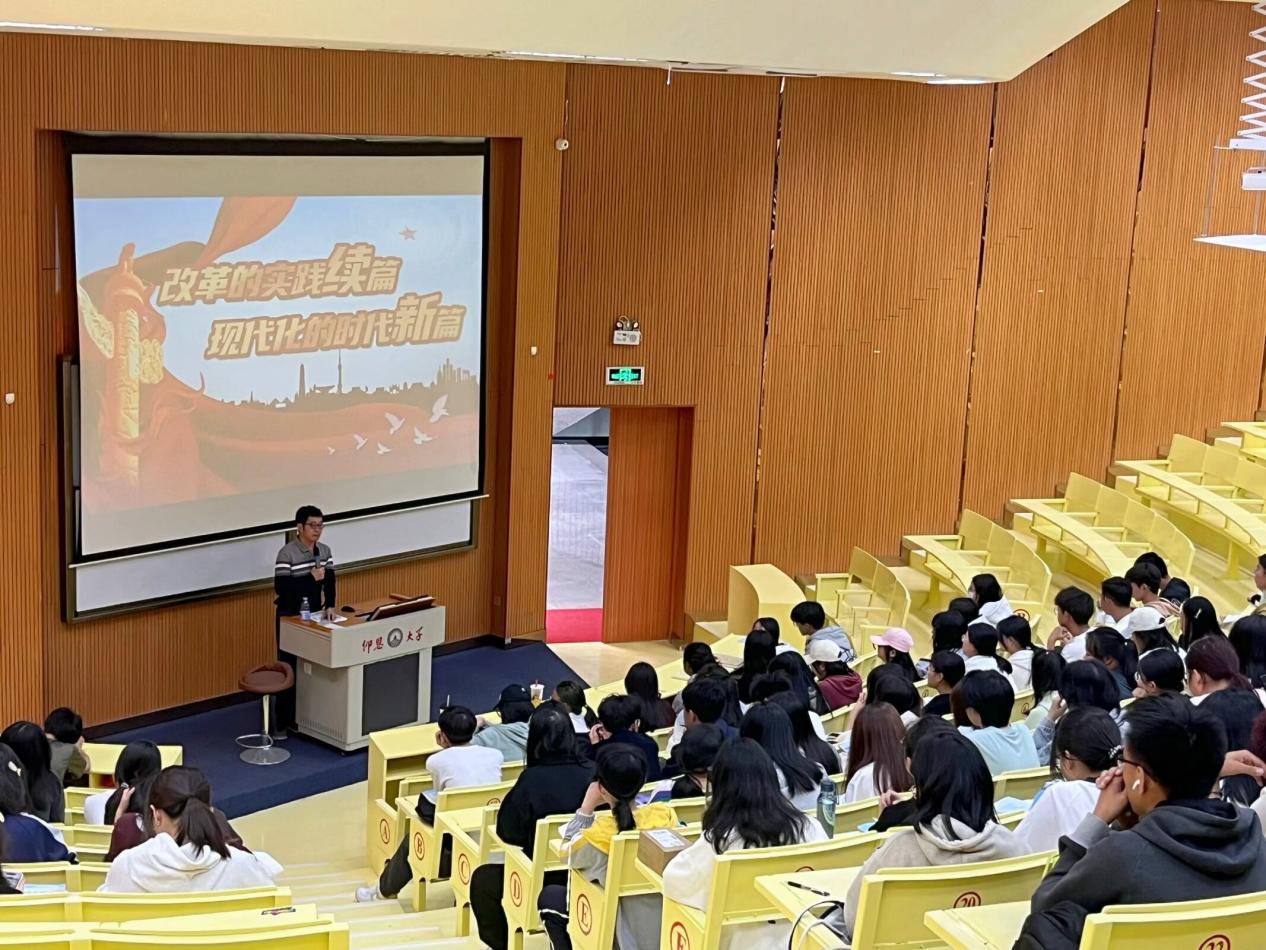 为深入学习贯彻落实党的二十届三中全会精神,进一步推动党的理论成果进校园、进课堂、进学生头脑,引导学生坚定理想信念,争做时代新人。11月8日下午,sjb世俱杯官方网站在第一教学区和昌教学楼致知讲堂开展“改革的实践续篇——现代化的时代新篇”专题讲座,讲座由sjb世俱杯官方网站党总支书记兼常务副院长许惠铭主讲,sjb世俱杯官方网站2024级全体普通本科学生参加。