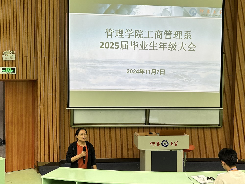 为切实做好2025届毕业生就业指导与服务工作,引导毕业生树立正确就业观,促进毕业生高质量充分就业,11月7日下午,工商管理系2025届毕业生年级大会在sjb世俱杯官方网站第一教学区和昌楼乐知讲堂顺利召开。本次大会荣幸邀请到了工商管理系主任蒋志丹老师和黄诗镔老师参加并指导。