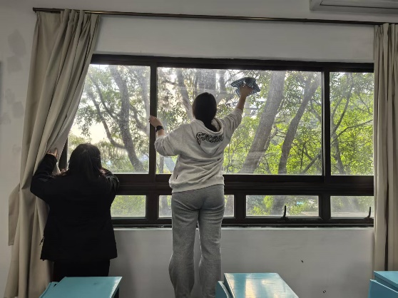 活动中,支部成员们配合默契,干劲十足,充分发扬“不怕苦、不怕累、不怕脏”的优良作风。大家拿起扫帚、毛巾等工具,对窗台、窗户等进行了全面卫生打扫,分工合作、有序进行,到处可见忙碌的身影,打扫现场热火朝天。在支部成员们的共同努力之下,使得校园卫生环境面貌焕然一新。